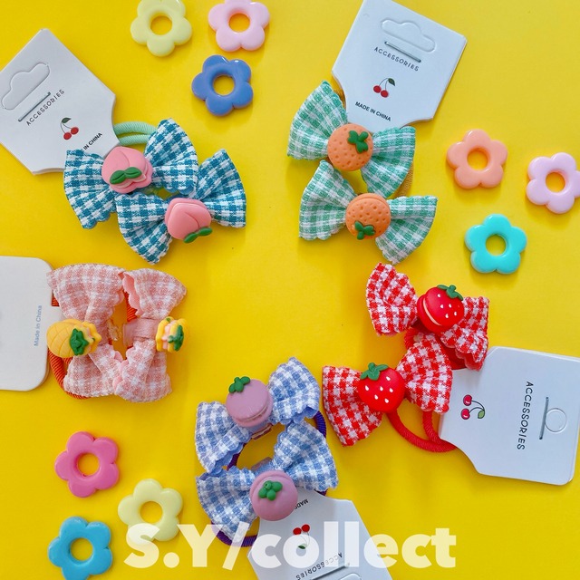 カジュアルなリボンに可愛らしいフルーツのモチーフがついたヘアゴムセット♥ ツインアレンジが好きなお子様にぴったりで、冬だって元気いっぱい遊びまわるキッズにおすすめ⭐︎⭐︎ ポニーテールへの重ね付けだってもちろん可愛いです ♪ ゴム部分はソフトで太め、少し短めだからサラサラで細いお子様の髪をやさしくしっかり留めてくれます♡ 女の子らしいリボンデザインと、カラフルな配色がカジュアルな良いとこ取りのヘアゴムはどんなコーデにもぴったり♥✧⁺˳ 簡単なヘアアレンジに加えるだけでパッとかわいくなれるのでおすすめのヘアゴムセットです ♪♪♪ サイズ目安(最長部) モチーフ部分全長約4cm ※2個1セットのお値段です。 ※カラー間違いなくご注文いただくために、必ず選択カラーをよくご確認の上ご購入をお願いいたします。 ※紙タグは生産時により異なる場合がございます。
