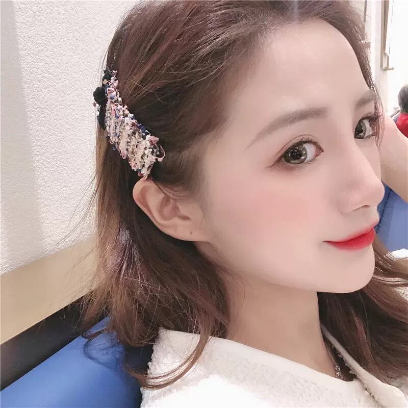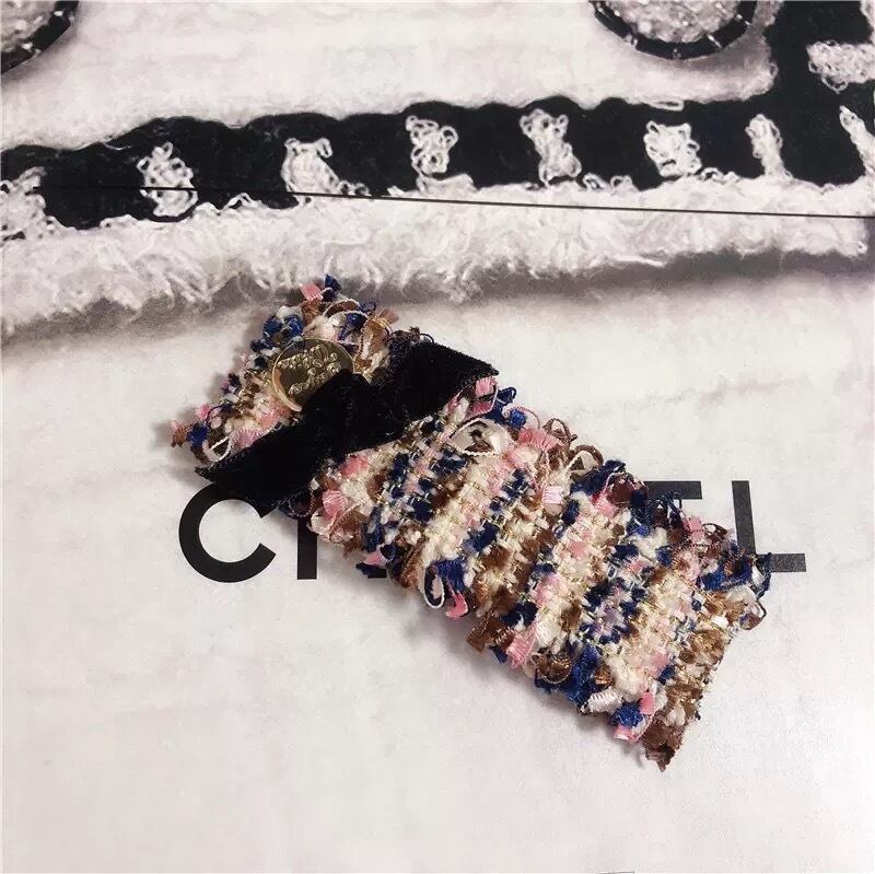 ブラウン、ピンク、ネイビーがMIXしたオフホワイトベースのツイードバレッタ♡