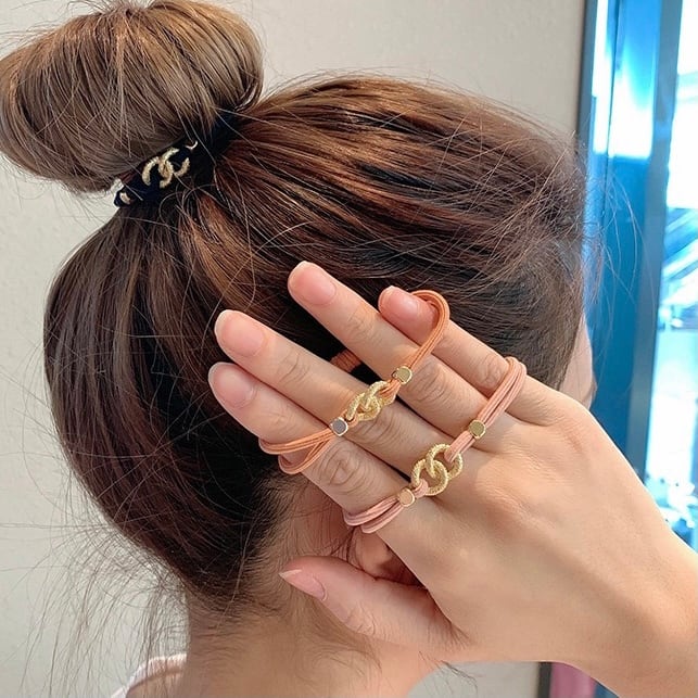 ゴールドのモチーフがクロスしたヘアゴム♡