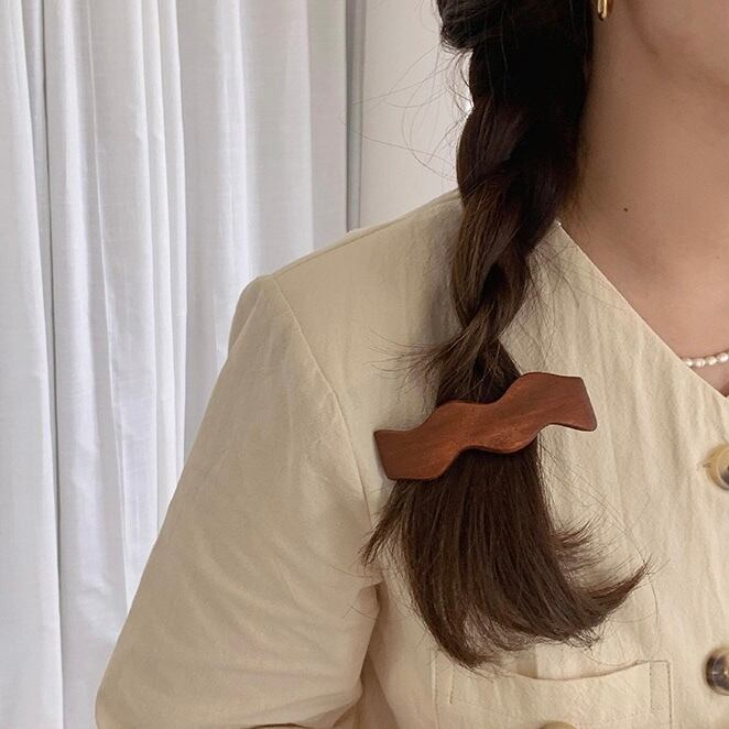 ウッド調の素材感がナチュラル可愛いバレッタ◡̈⭐︎