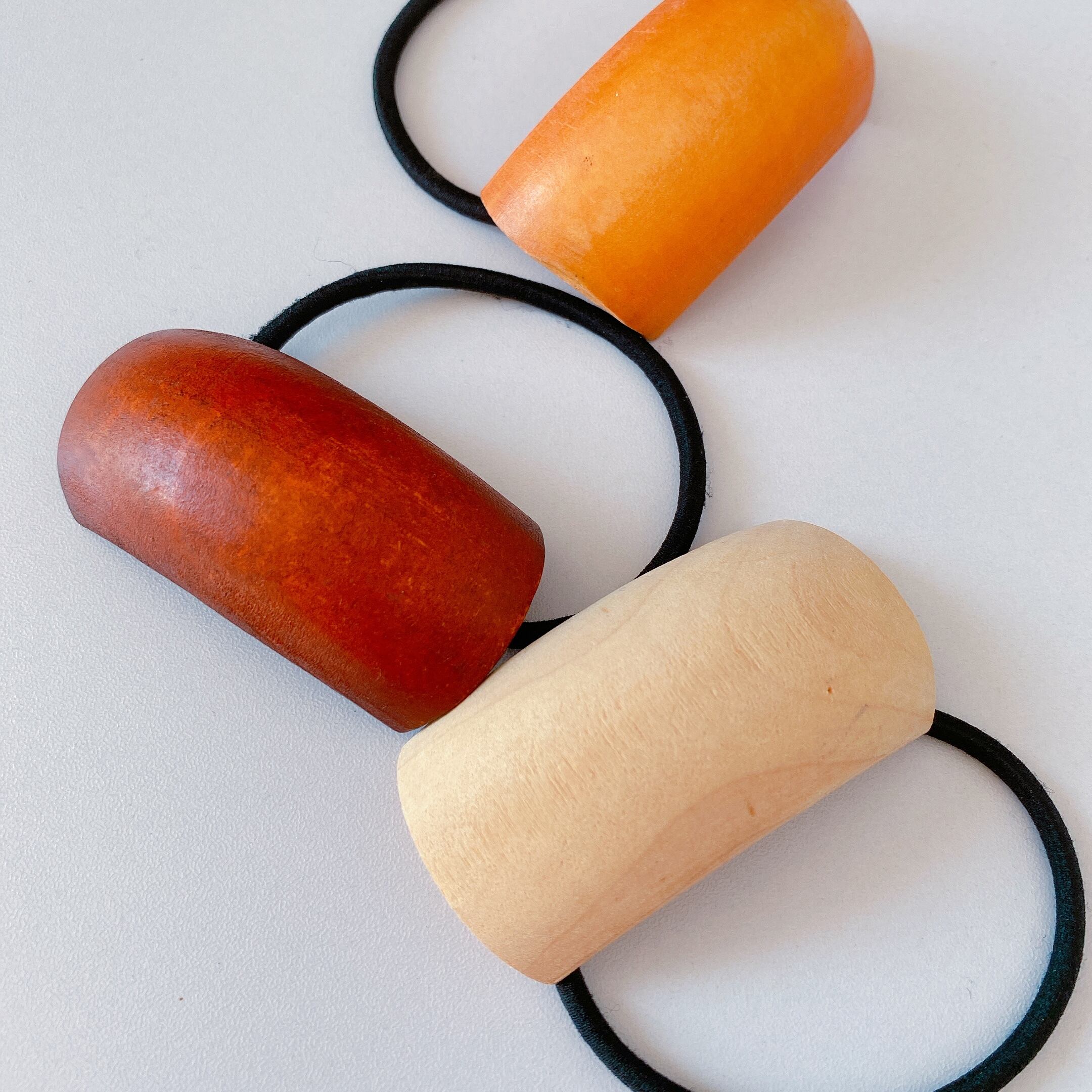 積み木のような木の温もりを感じられるナチュラルなヘアゴム☺︎