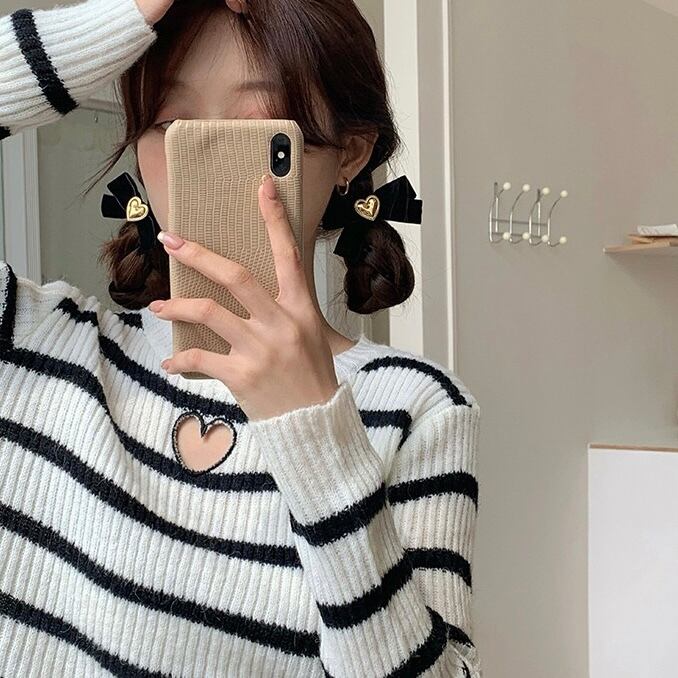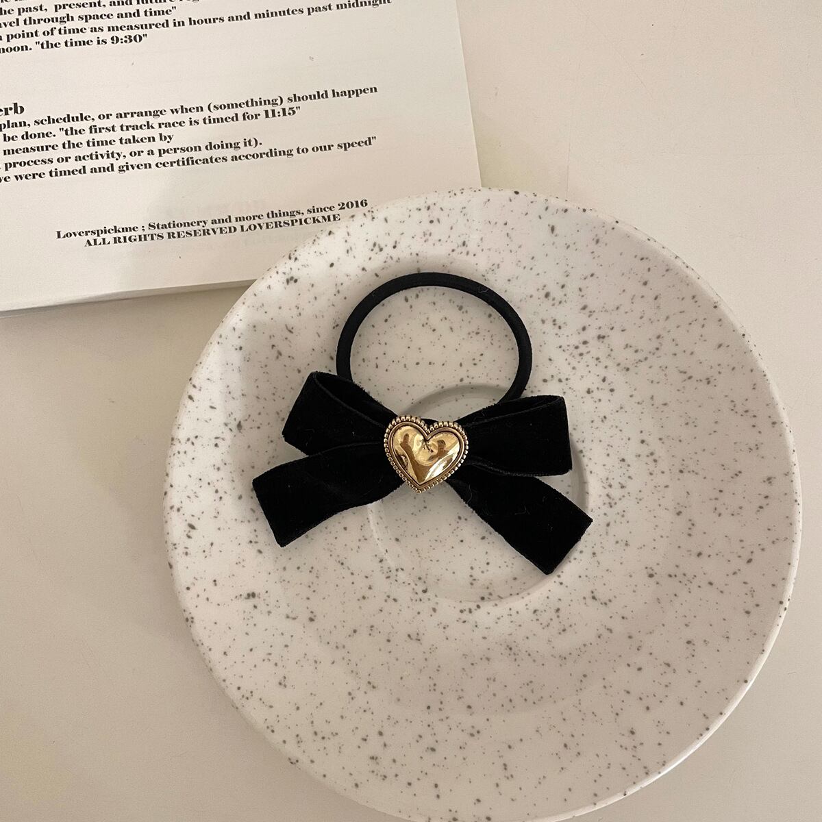 小さめでブラックカラーとちょっとくすんだゴールドなので大人のためのリボンアイテムといった雰囲気♡