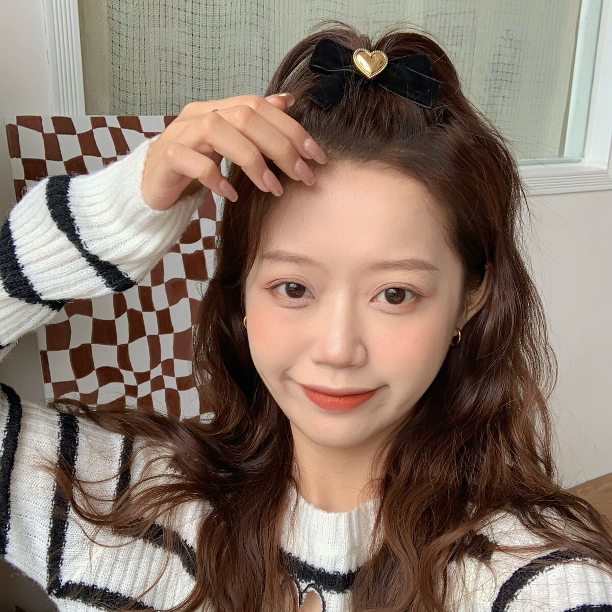 三つ編みの留める部分や、ポニーテールに合わせても小ぶりのサイズ感なのでガーリーになりすぎないのもポイントです☺︎