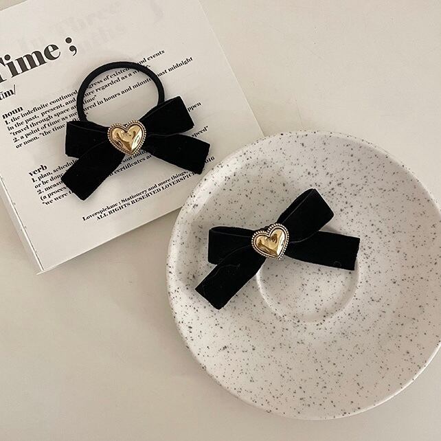 真ん中のヴィンテージ加工の施されたゴールドのハートがポイントのリボンゴム♡