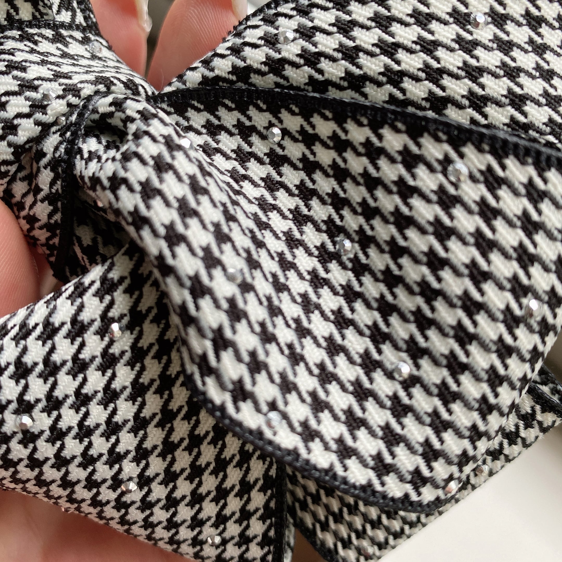 さりげなく小さなラインストーンが散りばめられたキラッとかわいい千鳥格子リボン♡