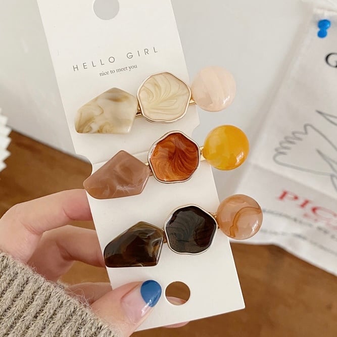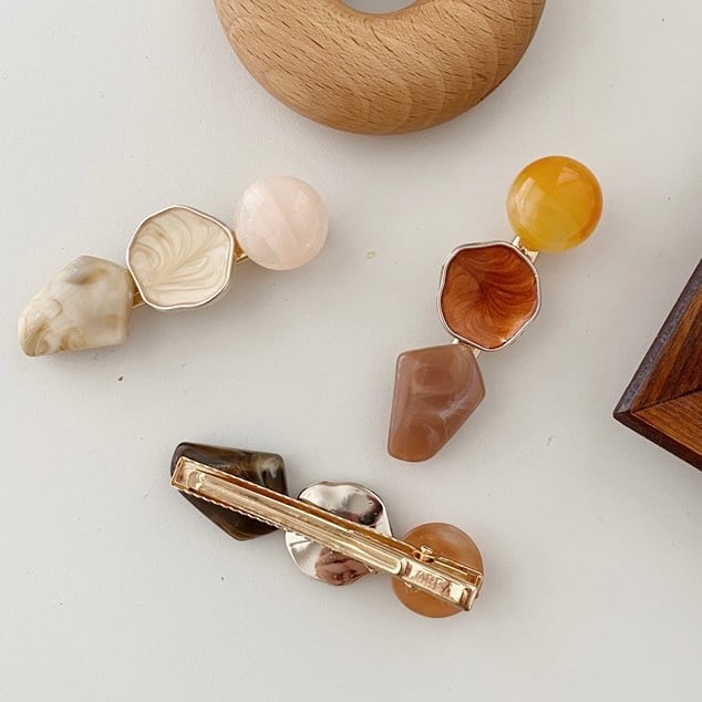 3つの違う形、色味、素材感がミックスしたニュアンスヘアアクセサリー♡