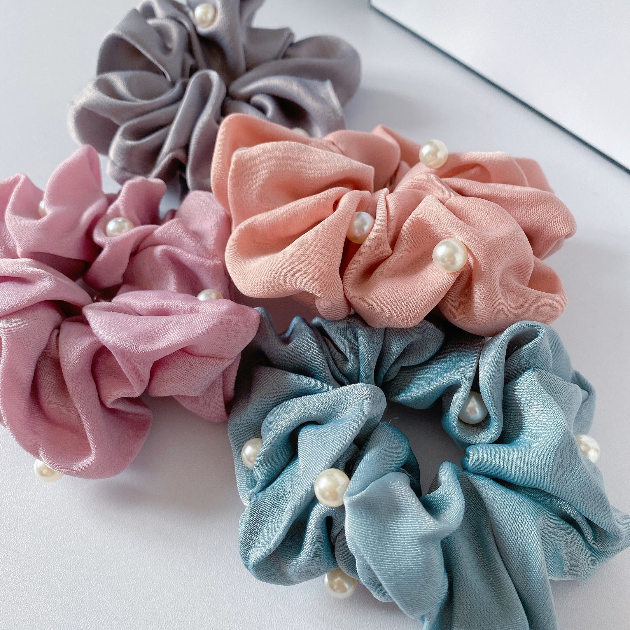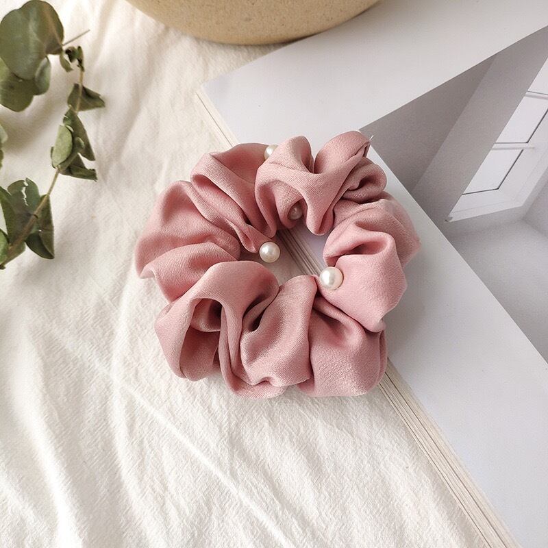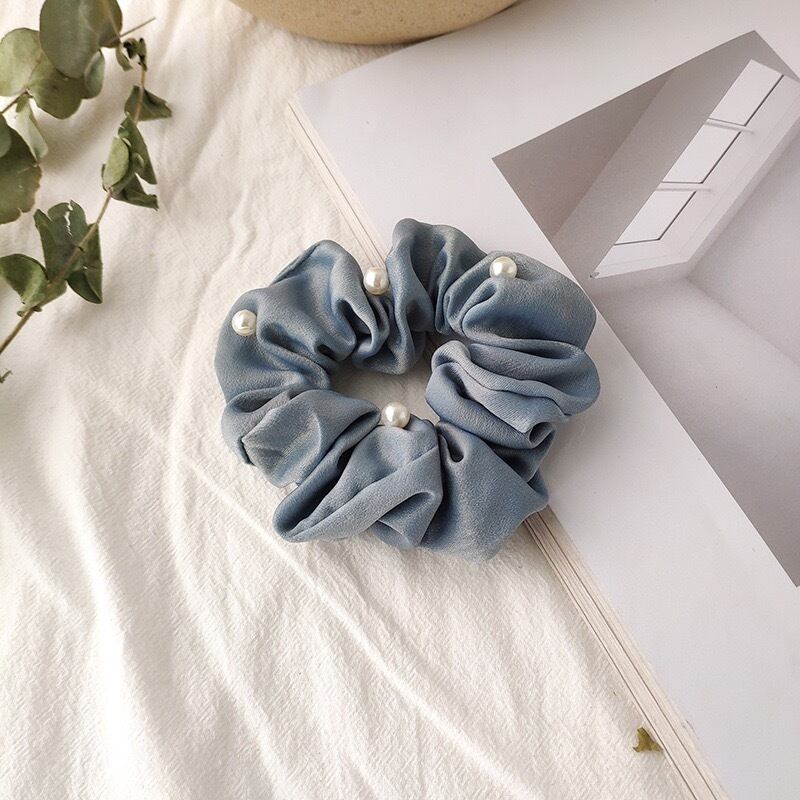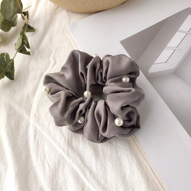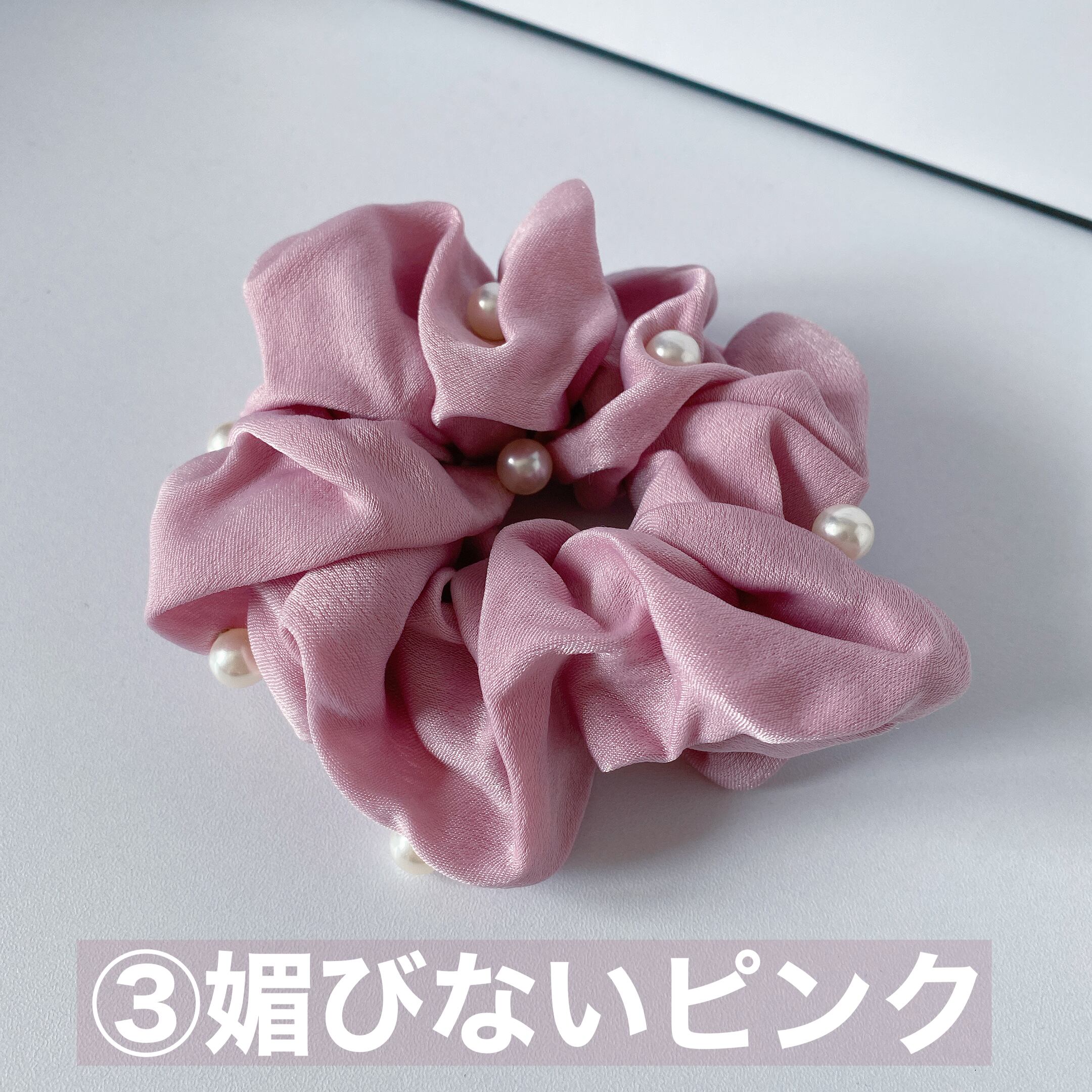 ちょっぴりくすんだ色味と中粒に散らしたパールがオトナ気分のシュシュ♡
