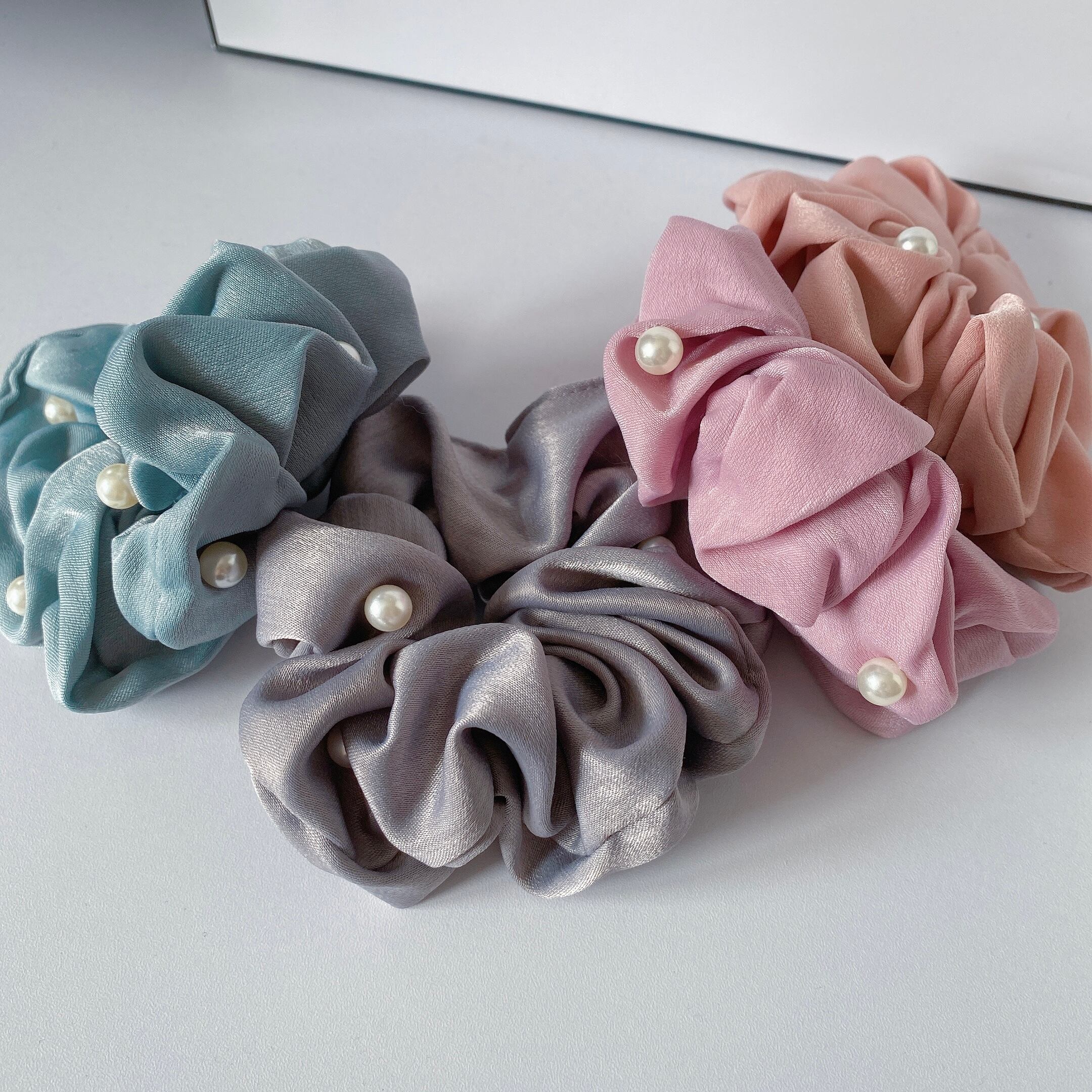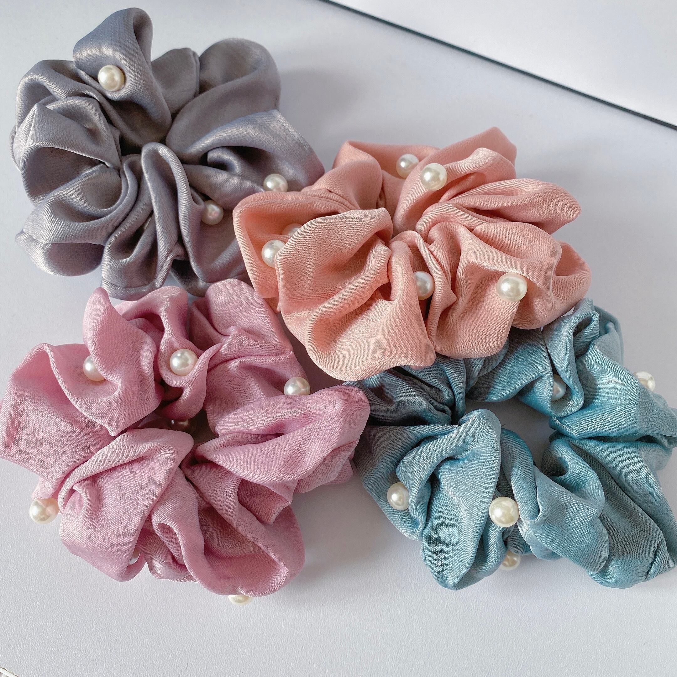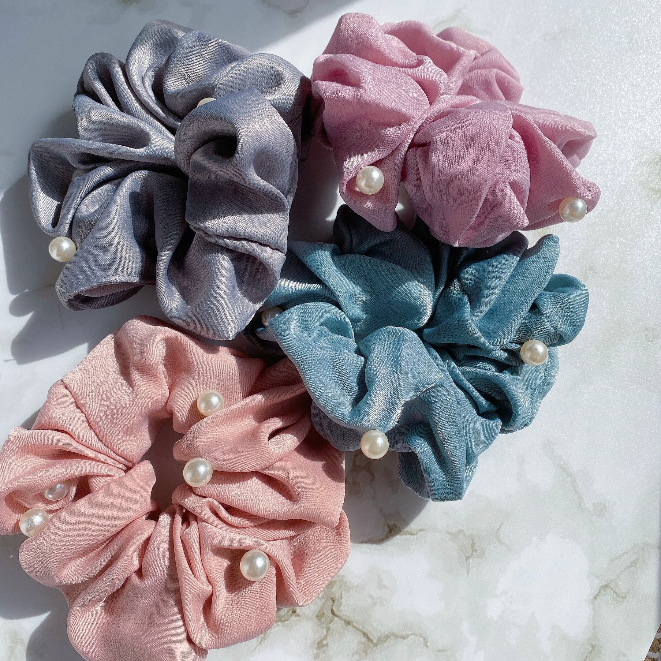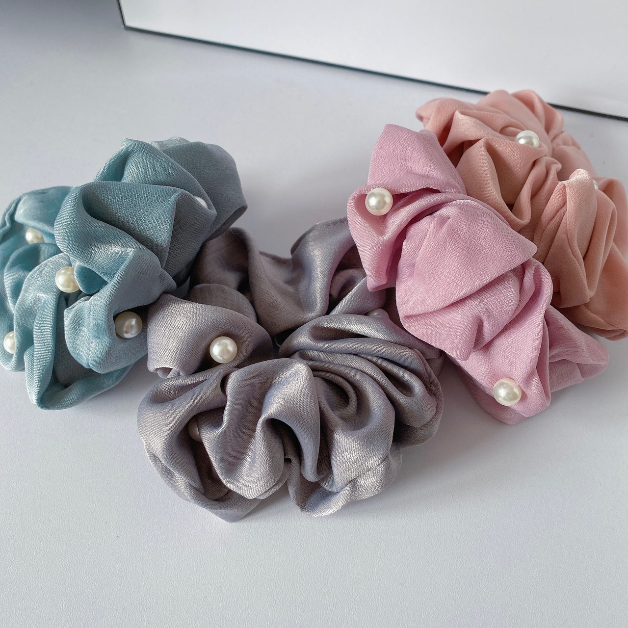 ちょっぴりくすんだ色味と中粒に散らしたパールがオトナ気分のシュシュ♡