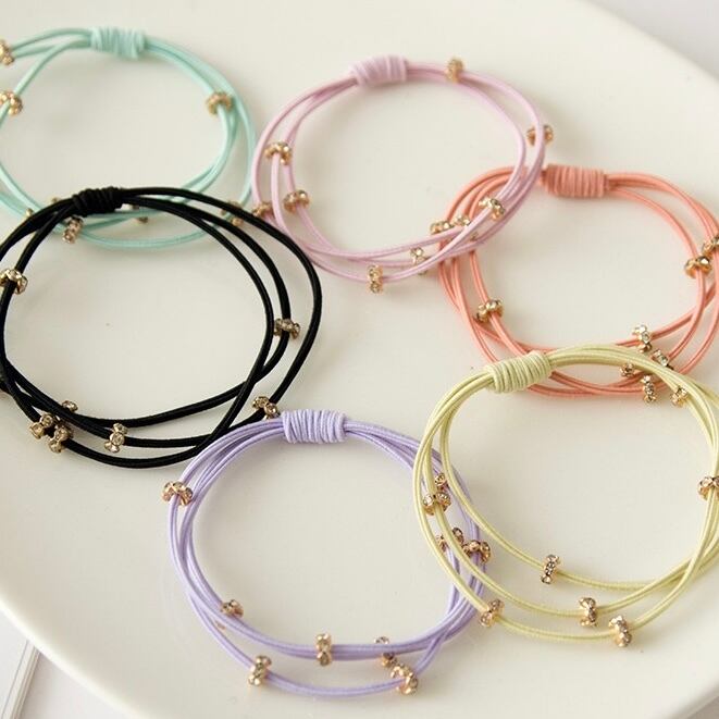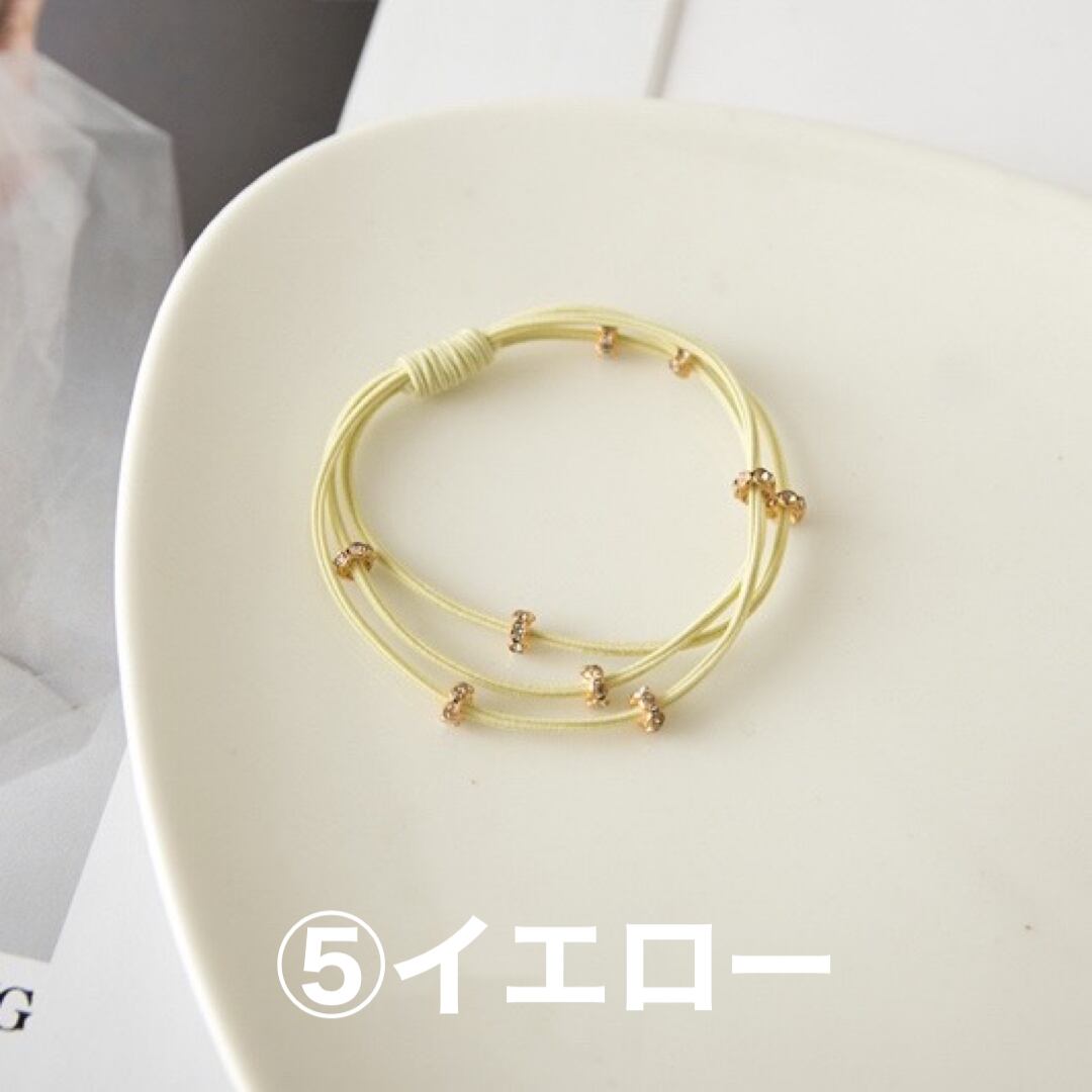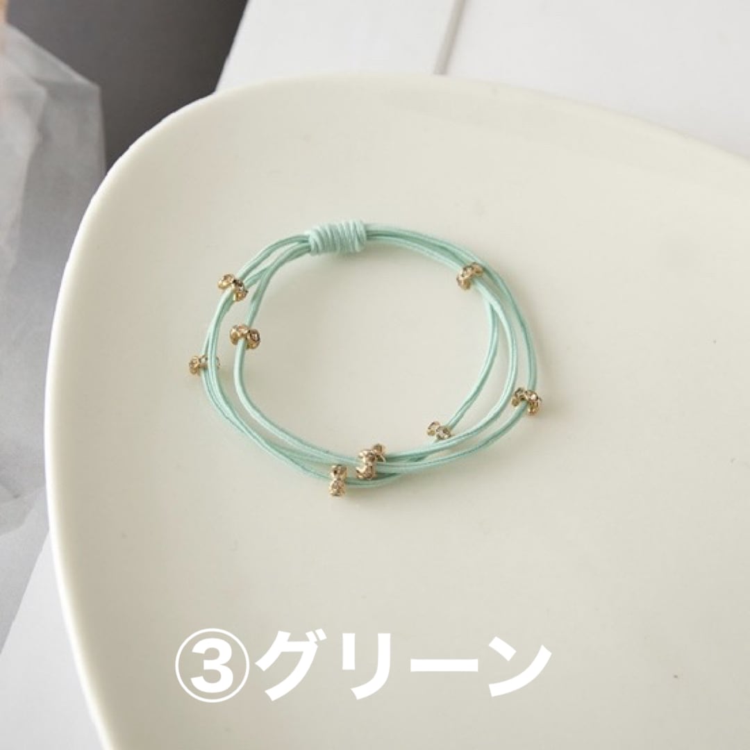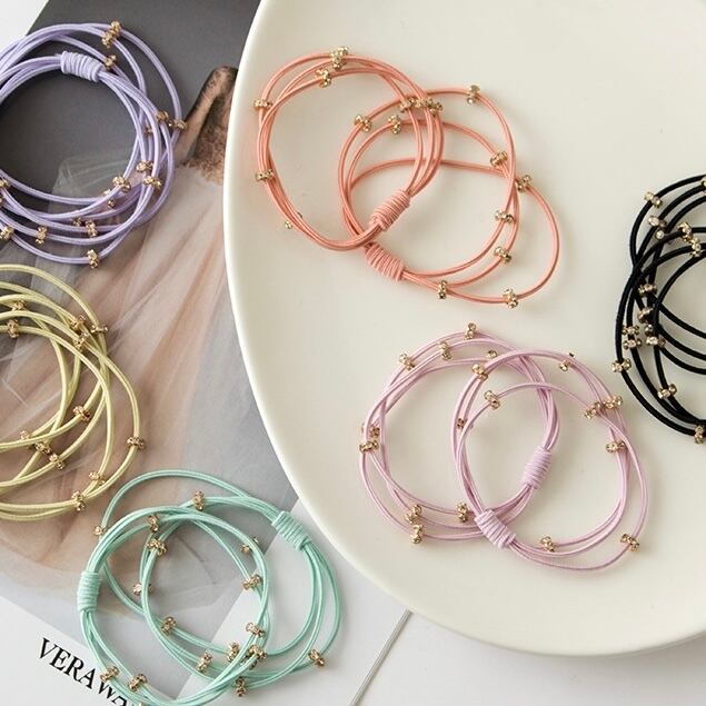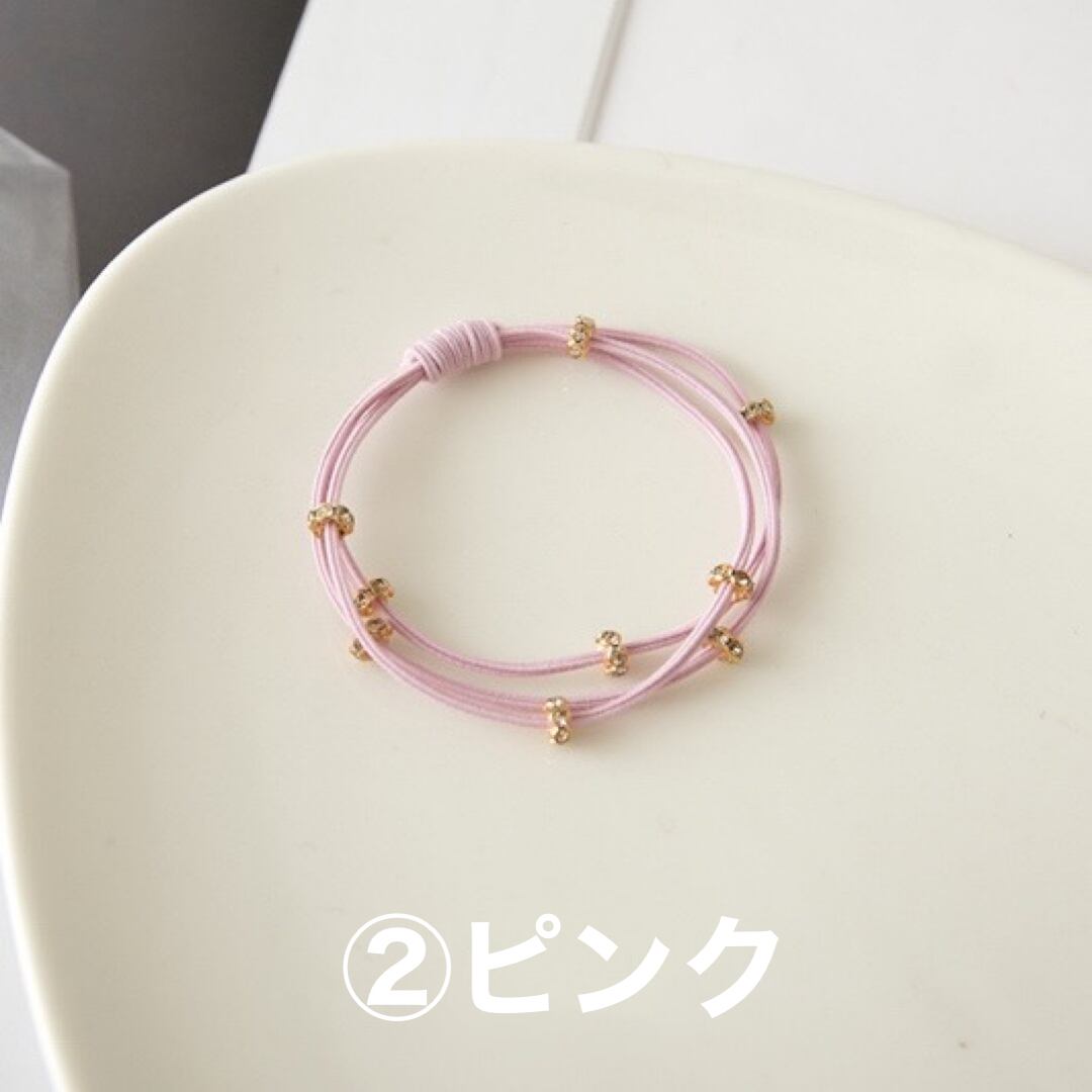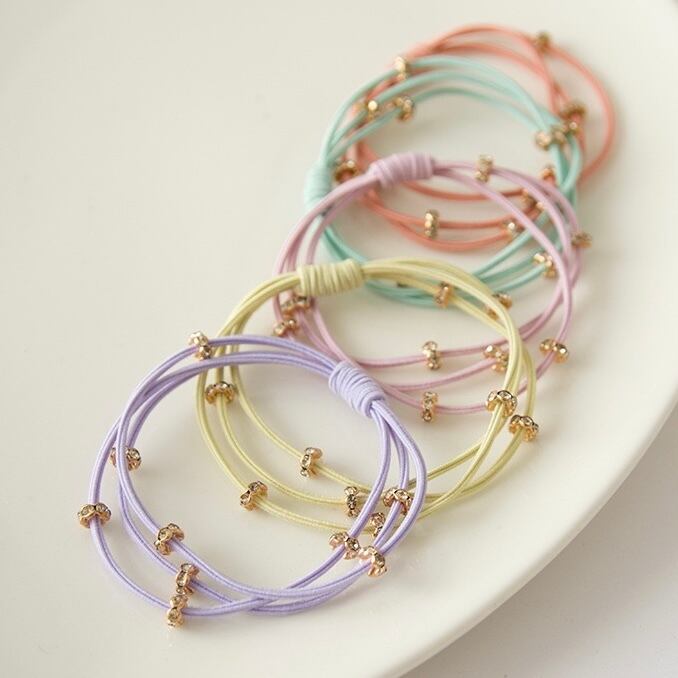 パステルカラーに小さなゴールドビーズがあしらわれたシンプルなヘアゴム♡