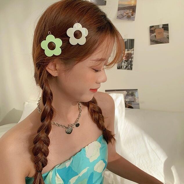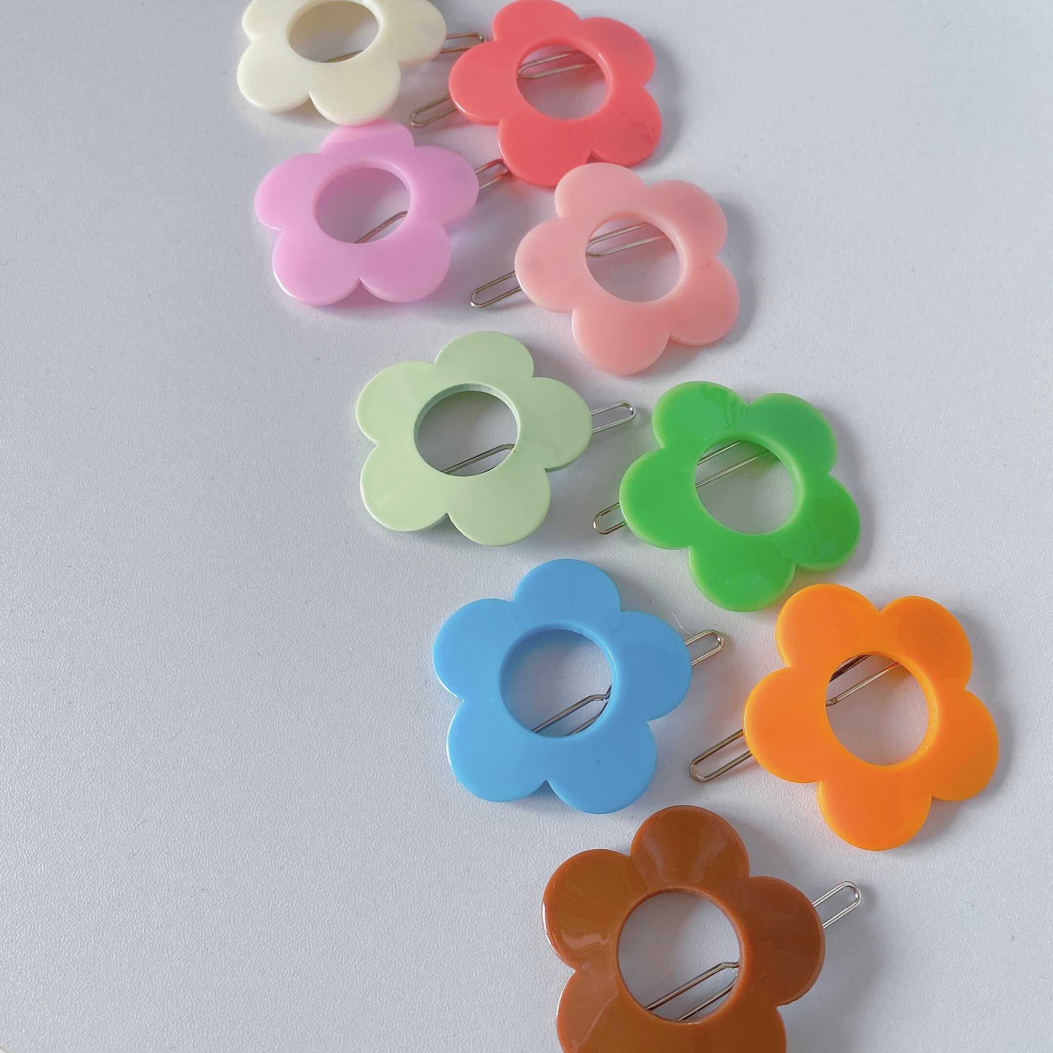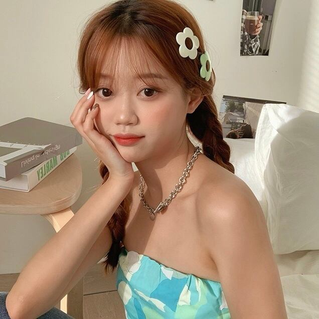 フラワーアクセサリーは本格的なものが多く大人っぽくなりがちですが、こんなポップでカジュアルだと元気で可愛らしく身につけられます◡̈♡
