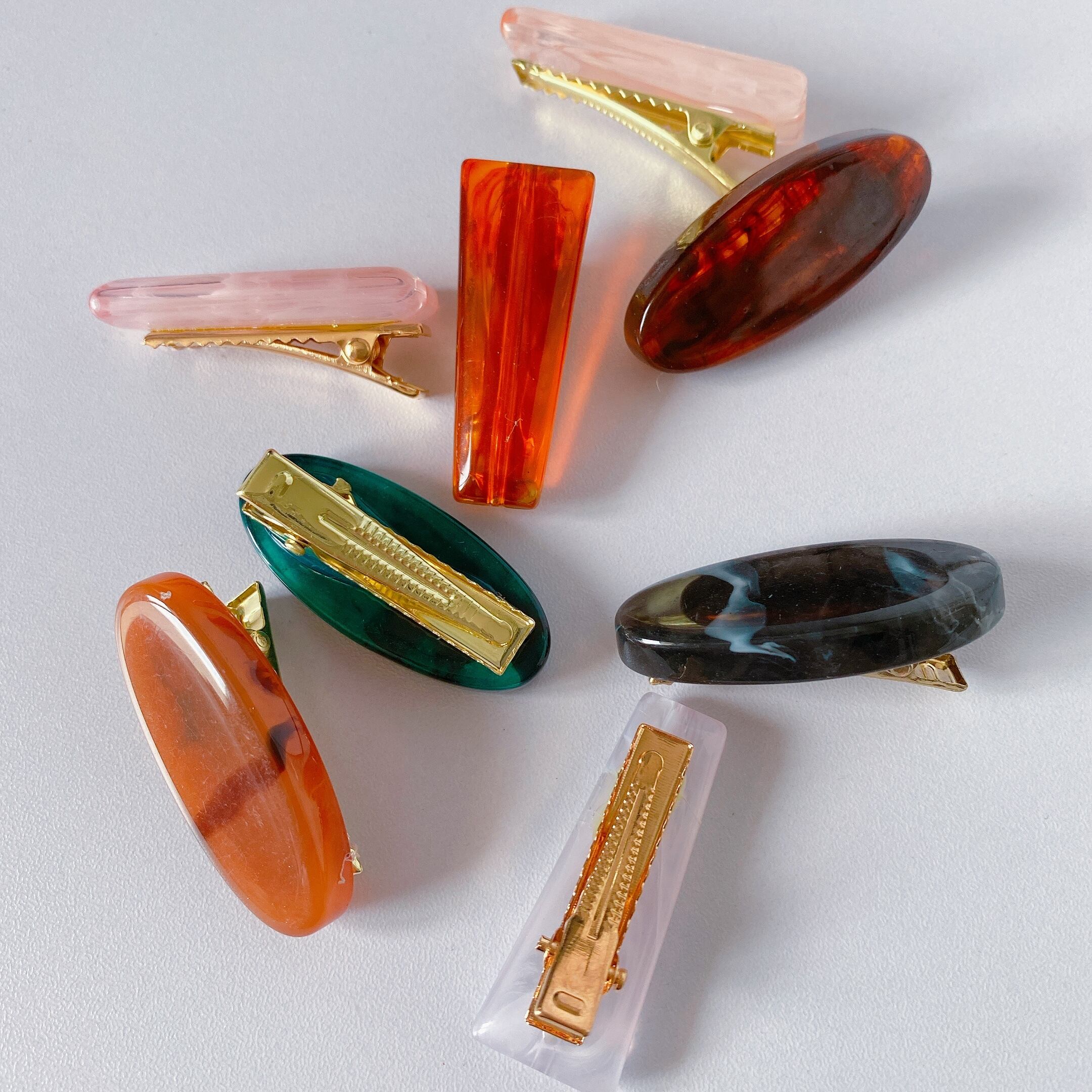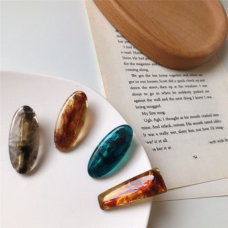 透け感と濁りマーブルのオーバル型とスクエア型のヘアピンset♥