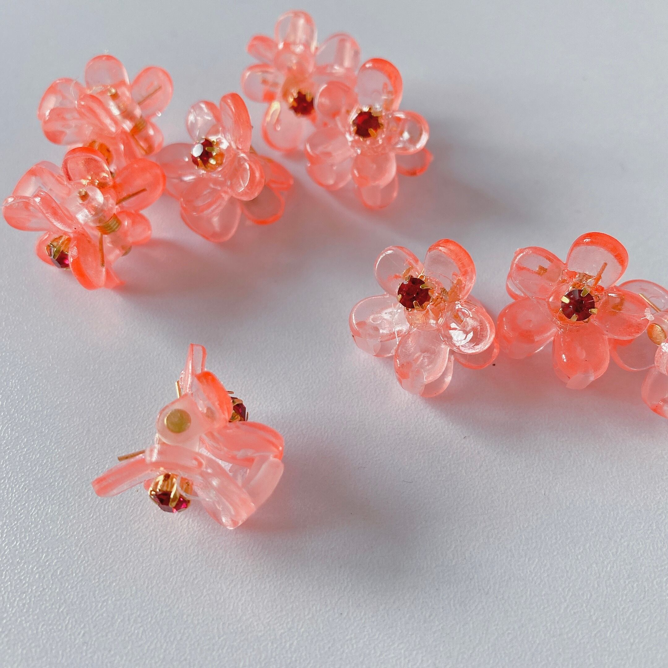 透け感ピンクとちっちゃなサイズ感、真ん中にもピンクのラインストーンで女の子モード全開のミニミニヘアクリップ♥♥