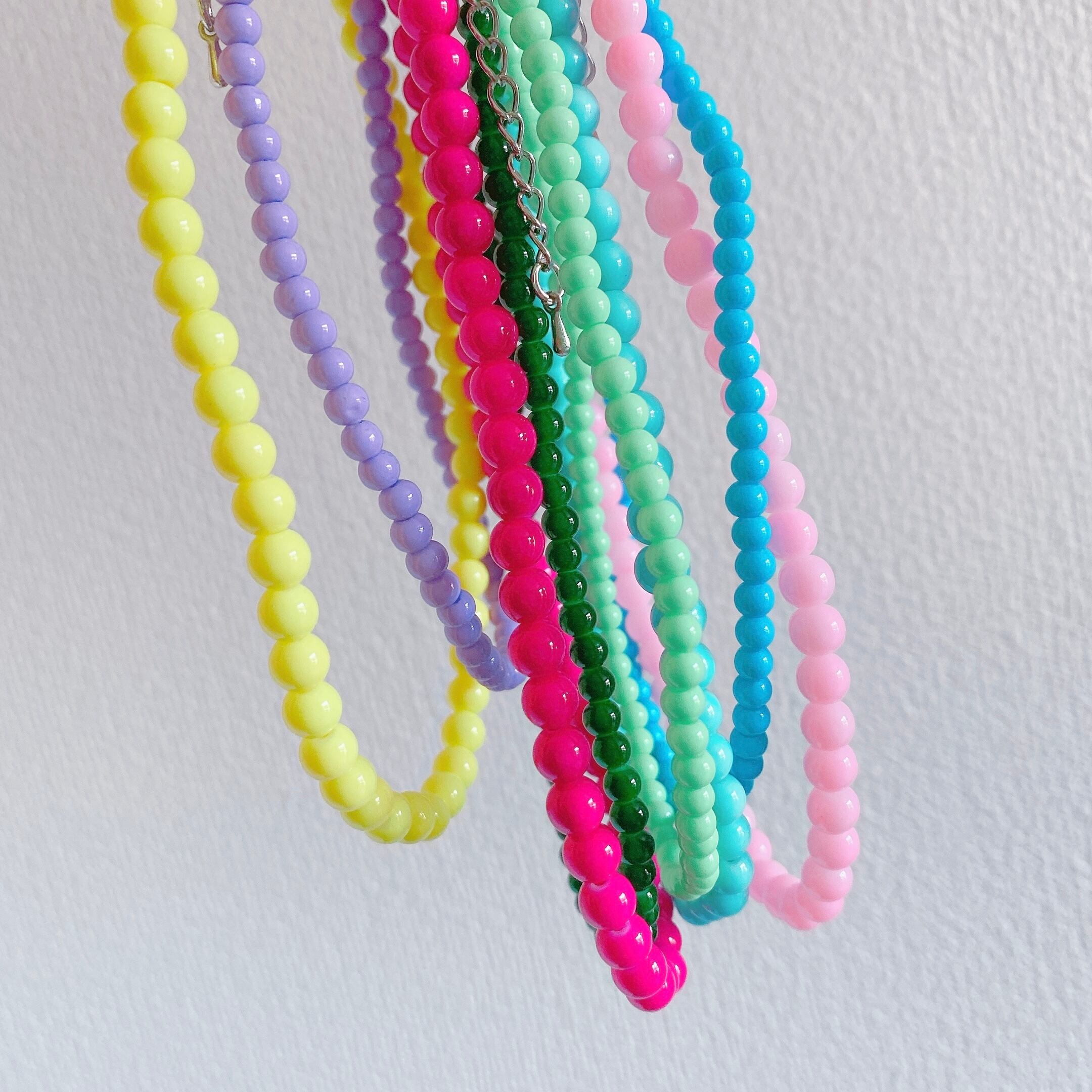 昨年頃から韓国アイドルが身につけてブームに火がついたビーズアクセサリーも今年はカラーコーデに合わせてワンカラーを組み合わせて着けるのがトレンド⭐︎