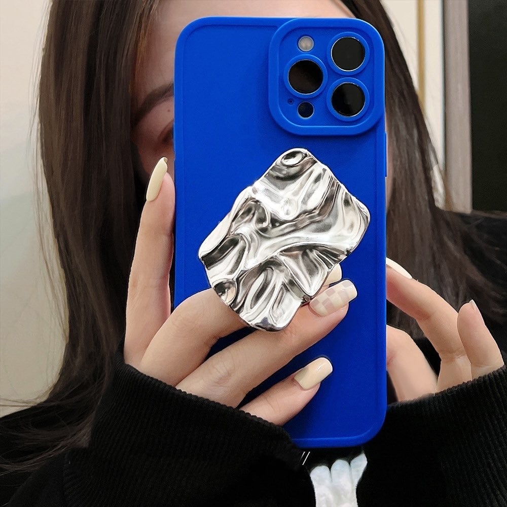 ネイルでもトレンドのぐにゃっと歪んだニュアンスミラーデザインが大人女子の心をくすぐるスマホグリップ✧⁺˳