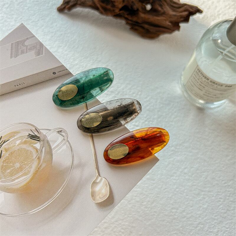 まるで、天然石のような適度な重厚感とゴールドのロゴがとっても高見えして大人のヘアアレンジにぴったり ♪♪♪