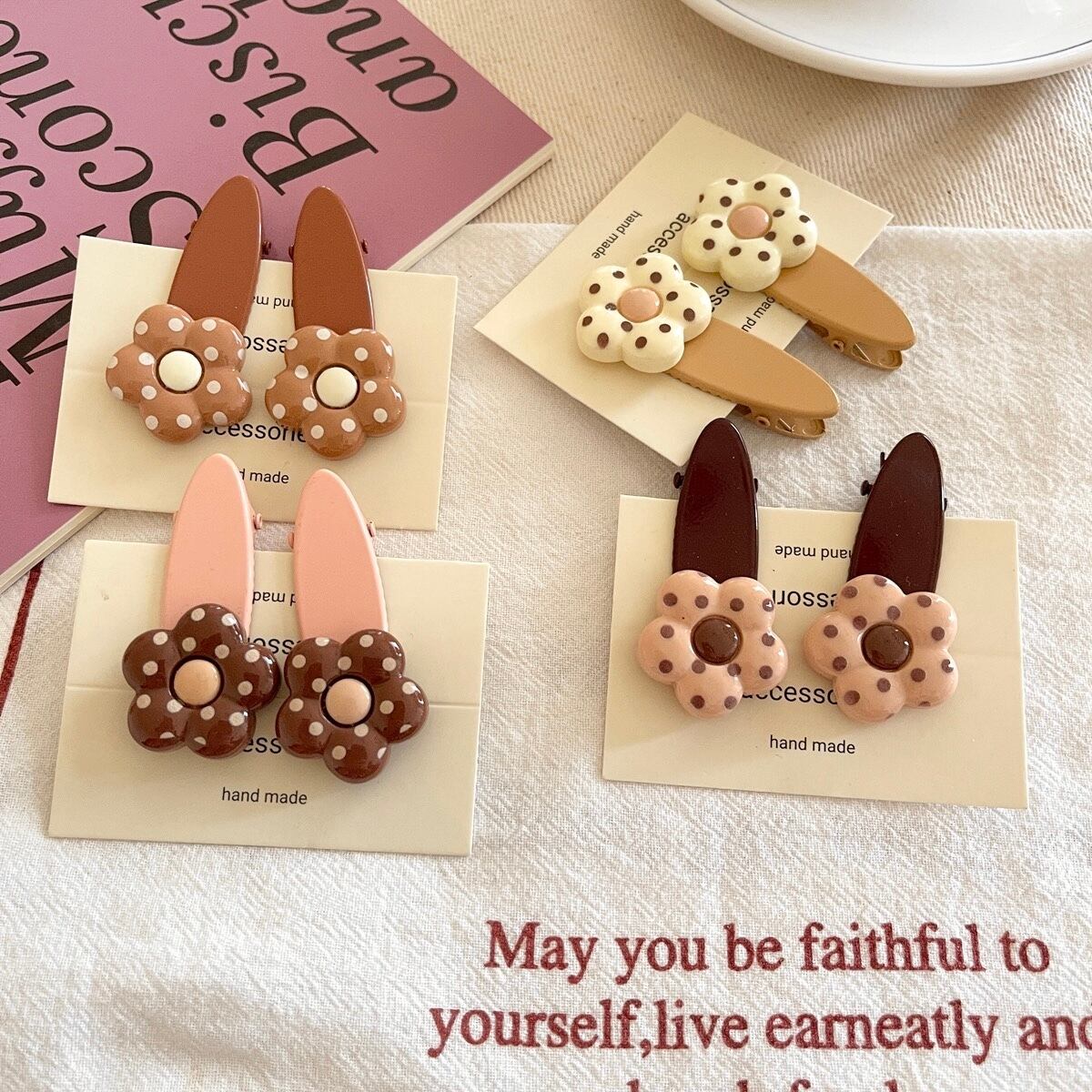 ドットブラウンおはなクリップ