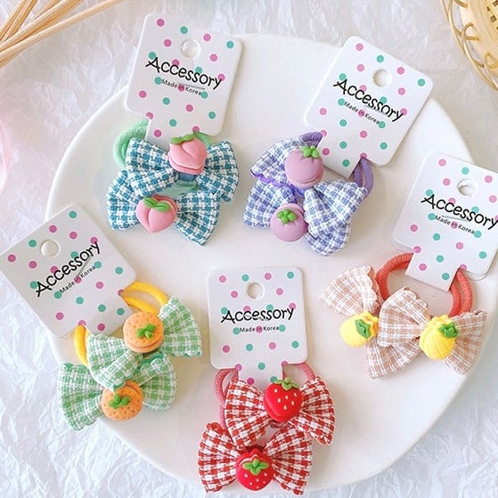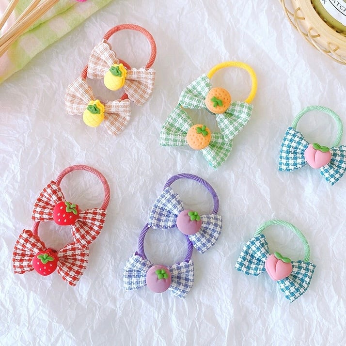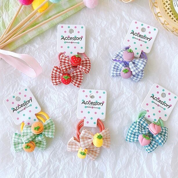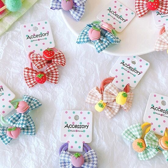 カジュアルなリボンに可愛らしいフルーツのモチーフがついたヘアゴムセット♥