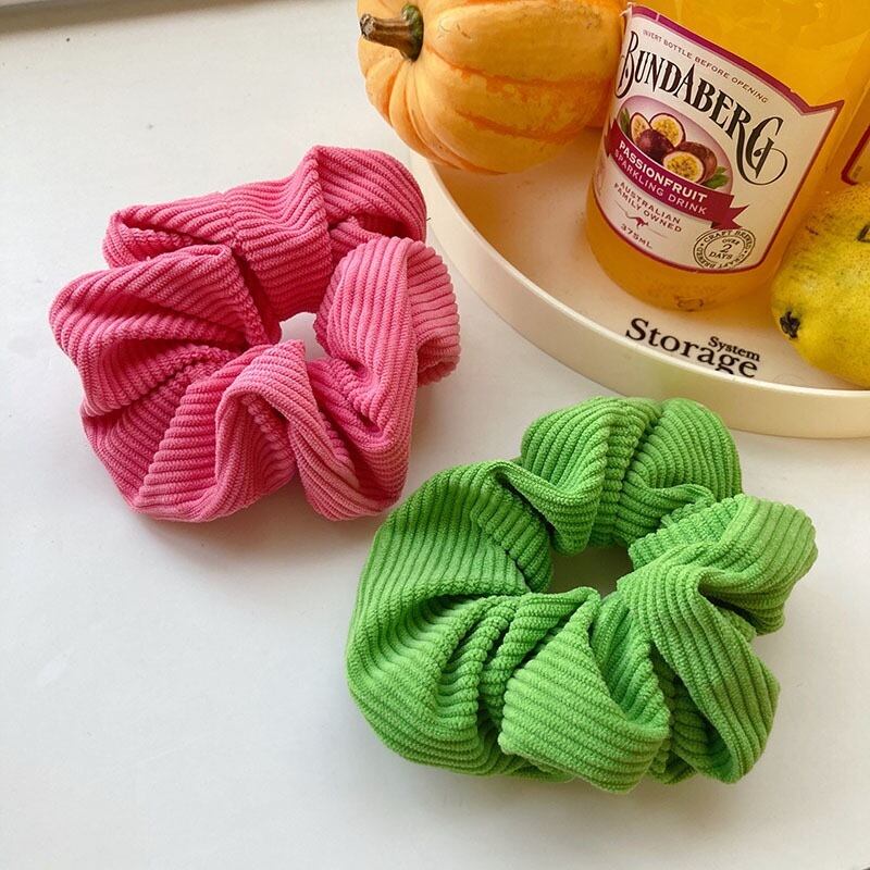 パッと目を惹く鮮やかなカラーと、ほっこり可愛いコーデュロイ生地のシュシュ♥♥