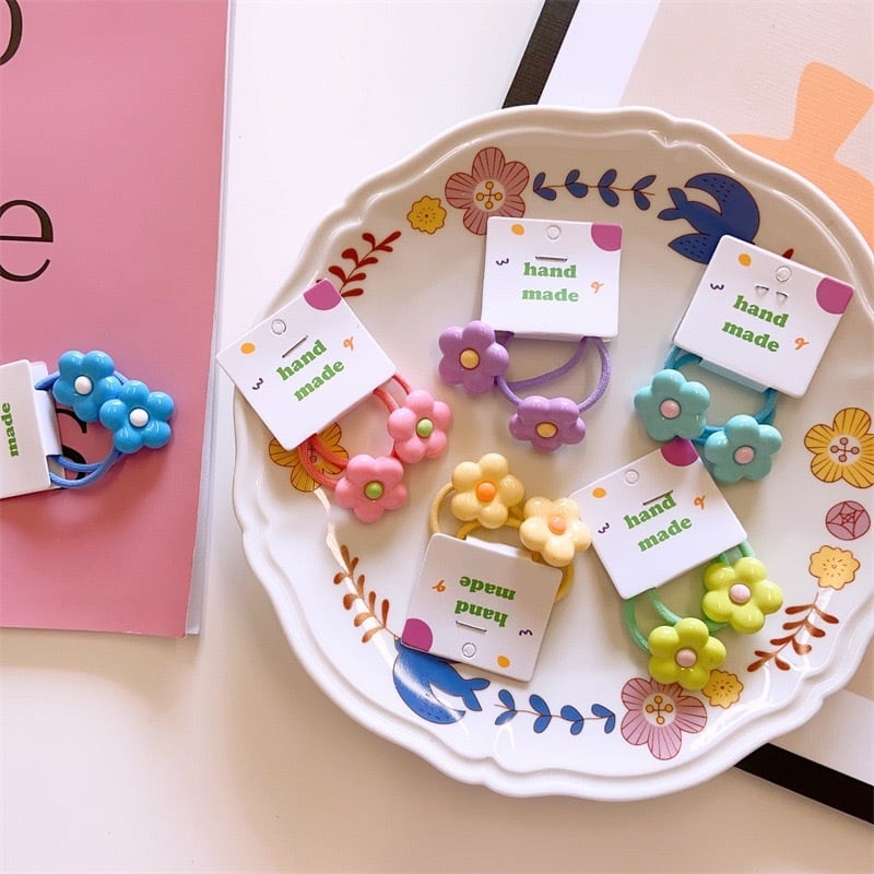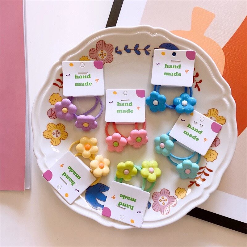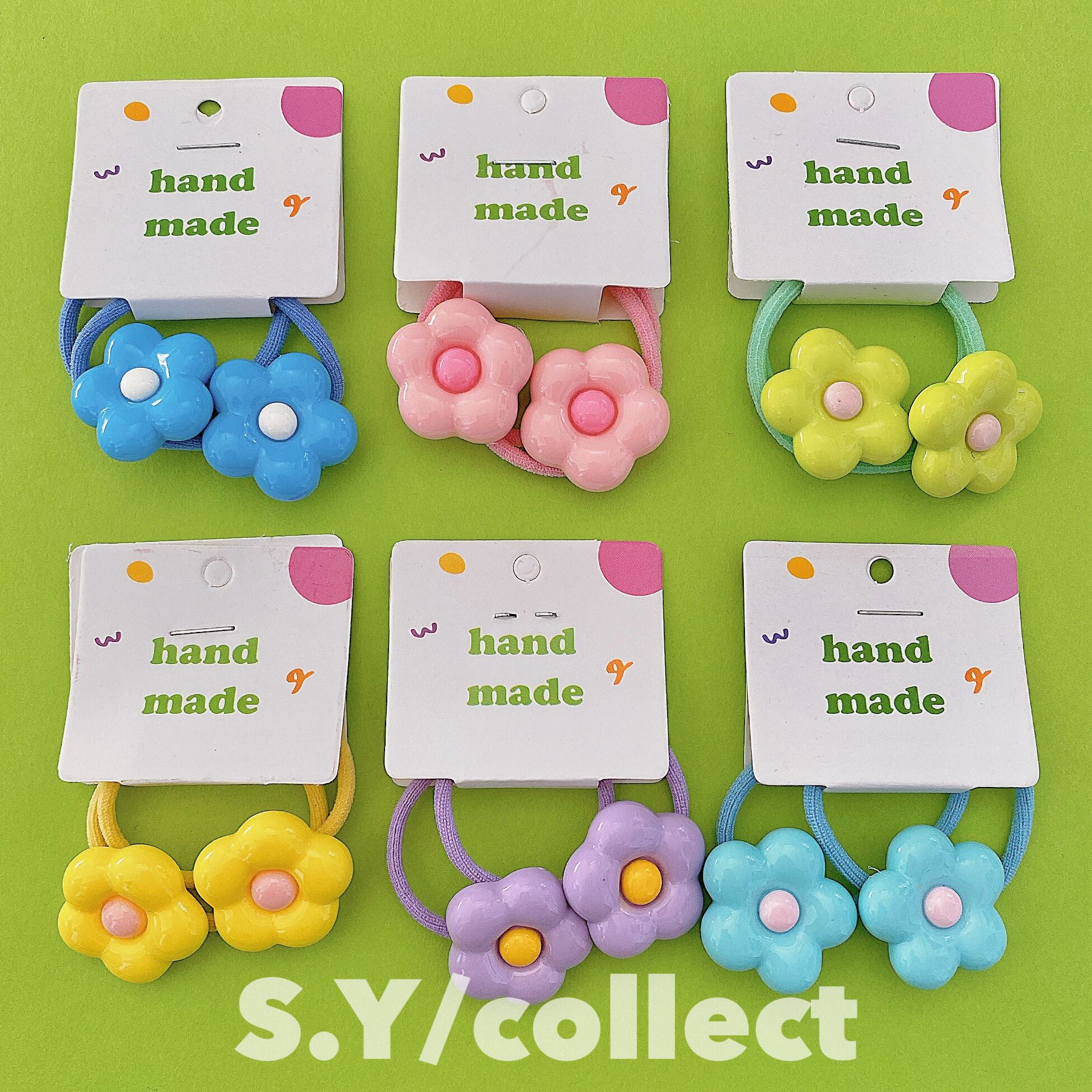 コロンとしたお花のデザインとシンプルなワンカラーベースが使いやすいヘアゴムset♡.ᐟ.ᐟ