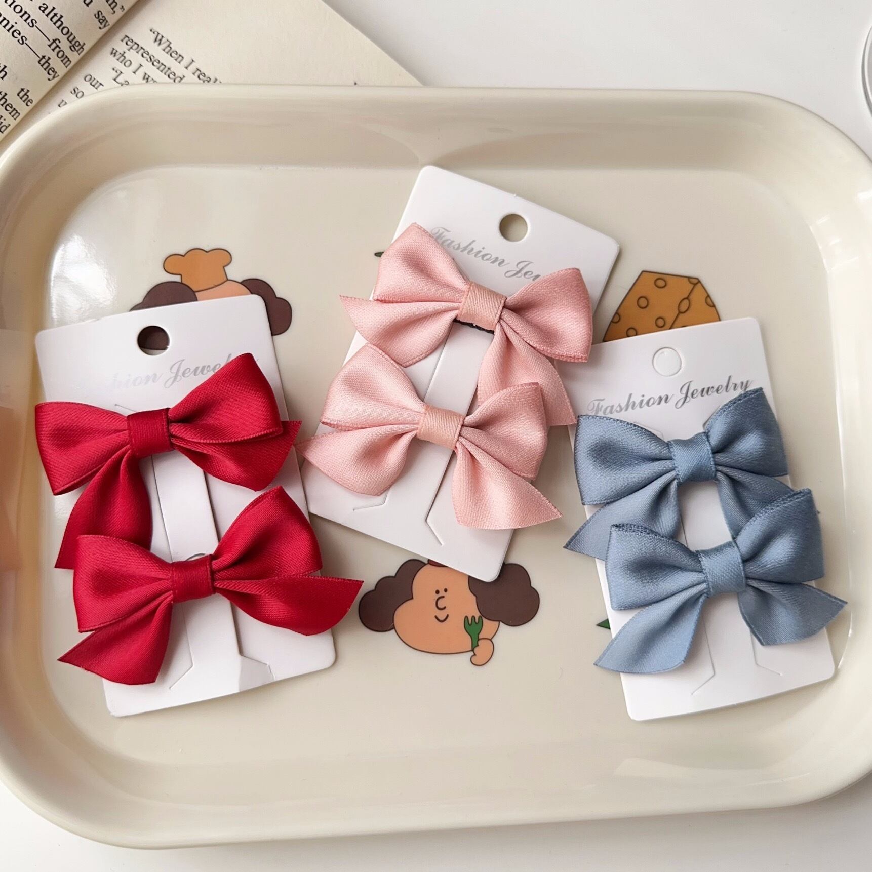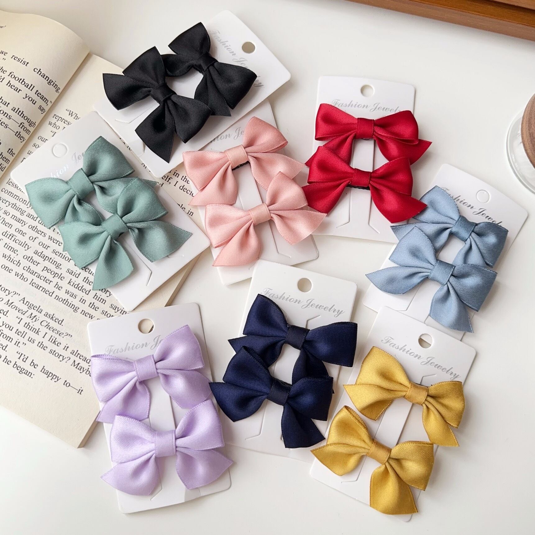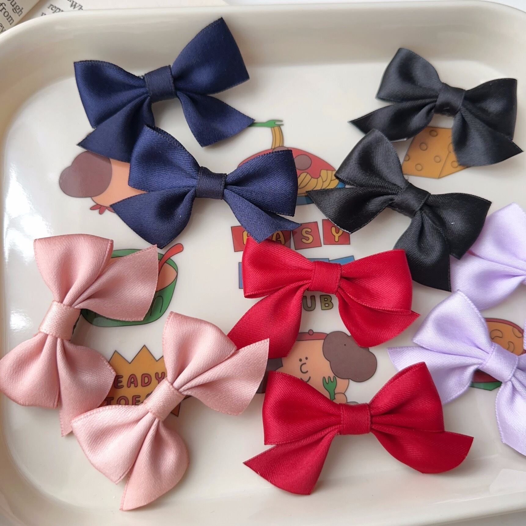 光沢のある生地感で、園服や制服、ドレスアップしたときに見劣りしないヘアアクセサリーです♥