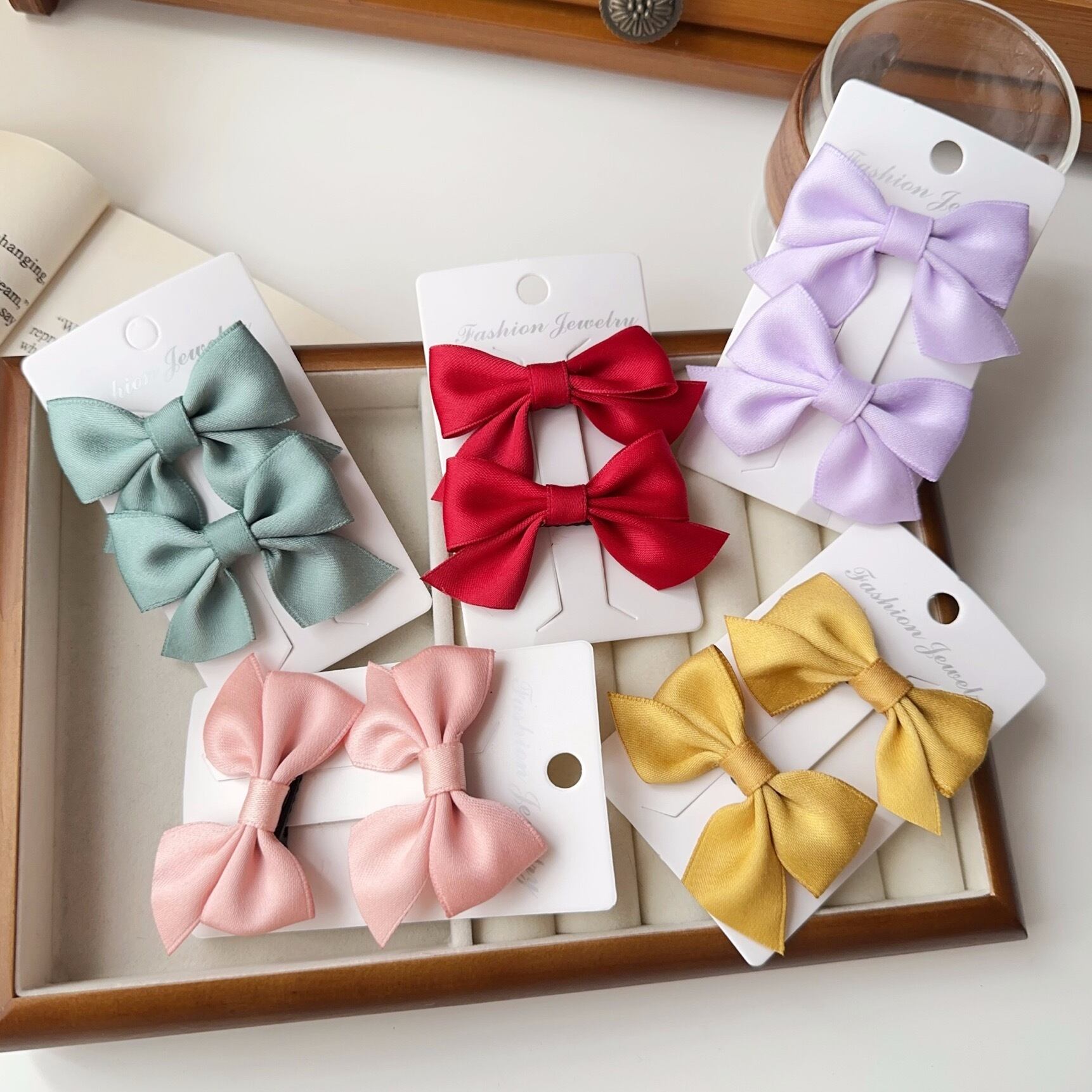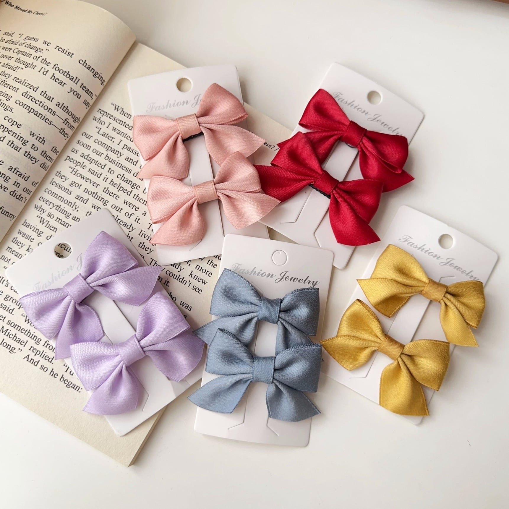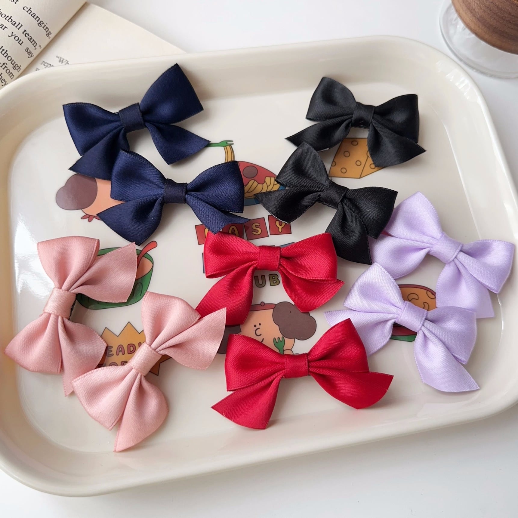 光沢のある生地感で、園服や制服、ドレスアップしたときに見劣りしないヘアアクセサリーです♥