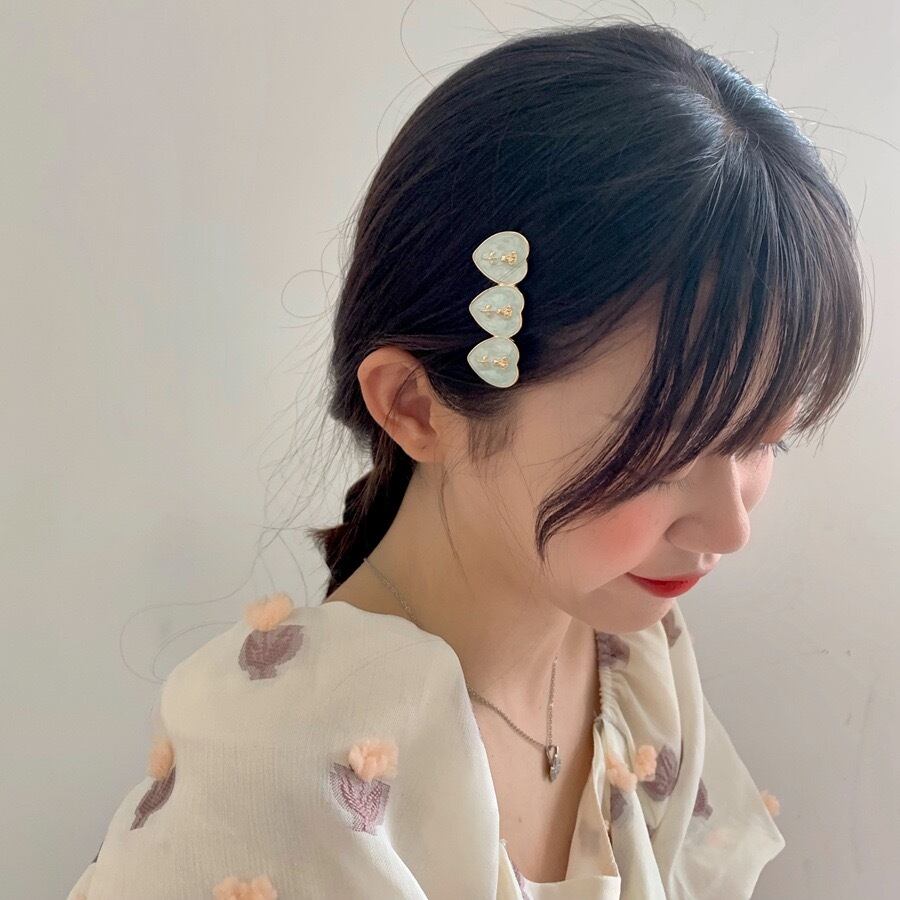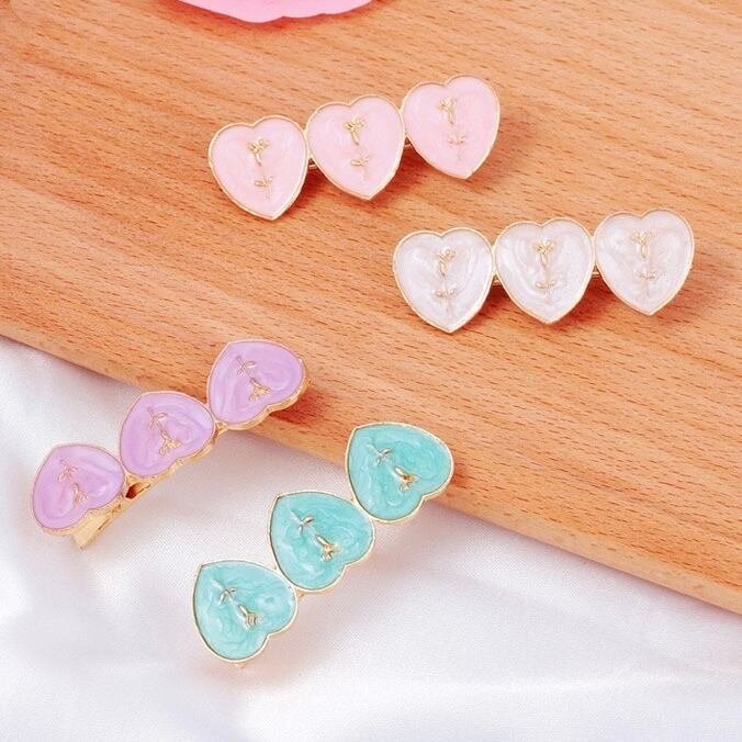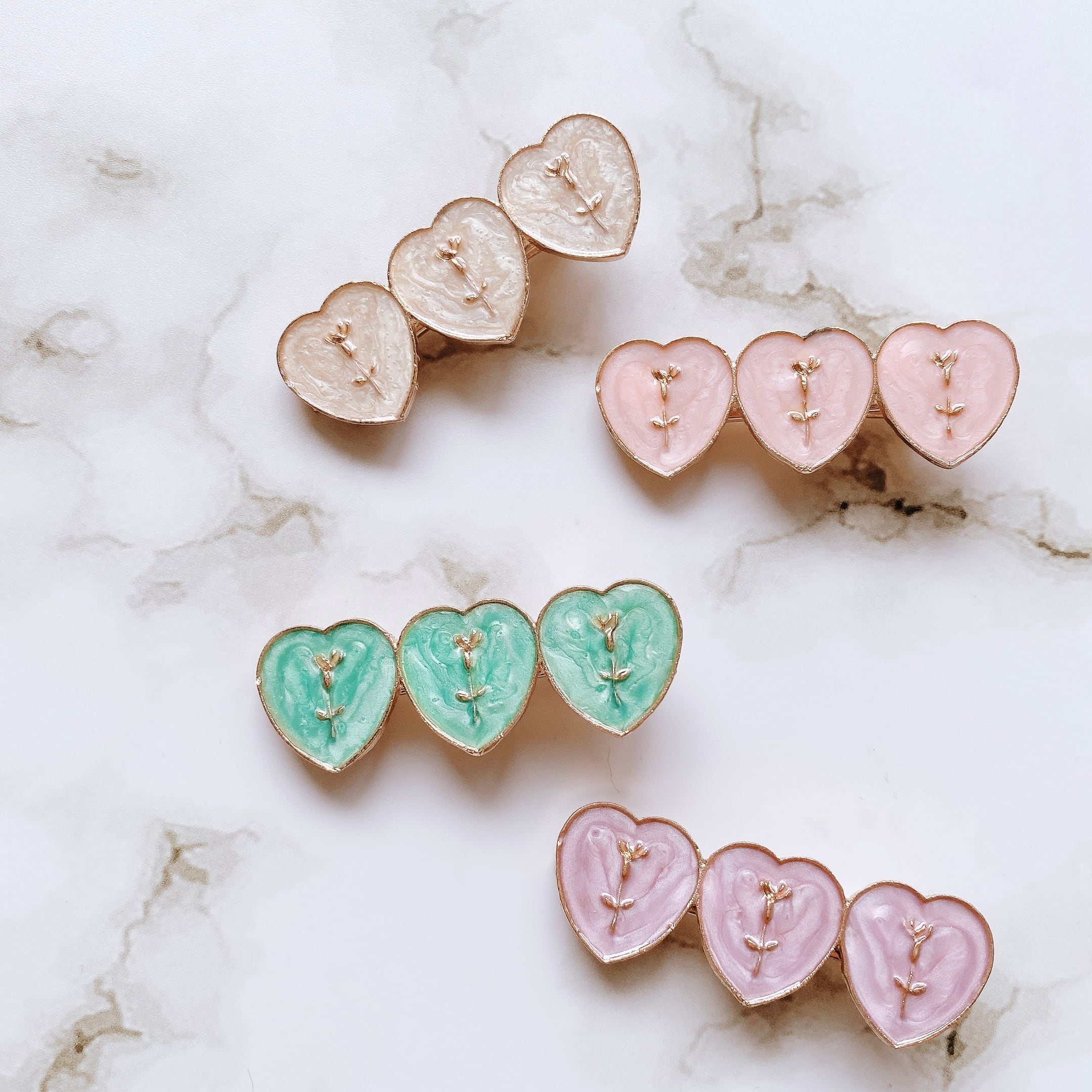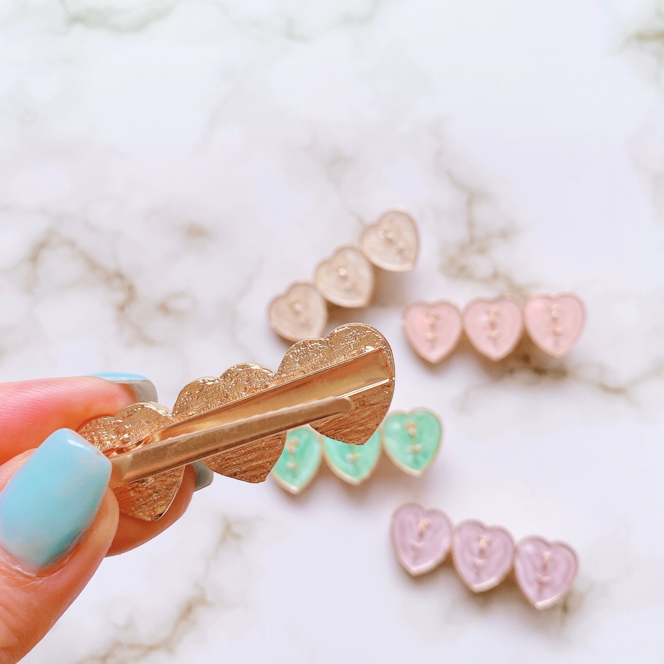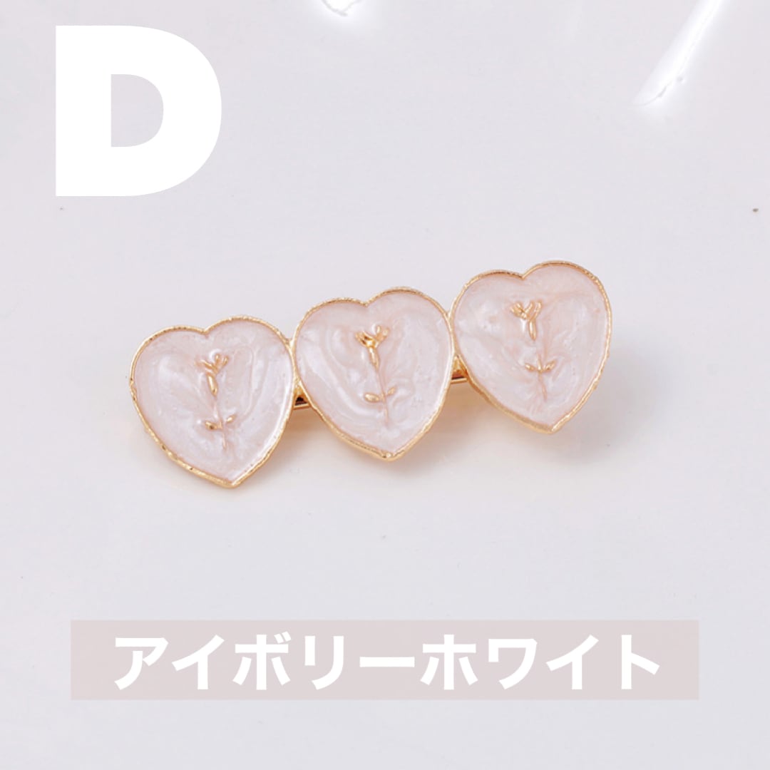パール感のある淡い色味とゴールドのアクセントが綺麗めだけれどハートのデザインで可愛らしくもある女子ムードたっぷりのヘアピンクリップ♥♥♥