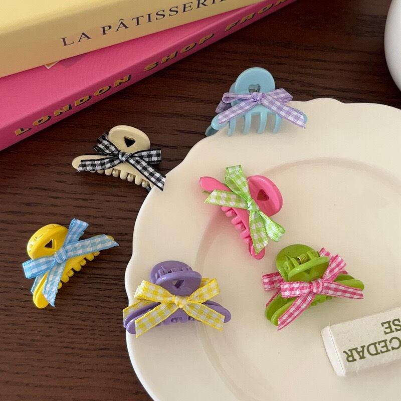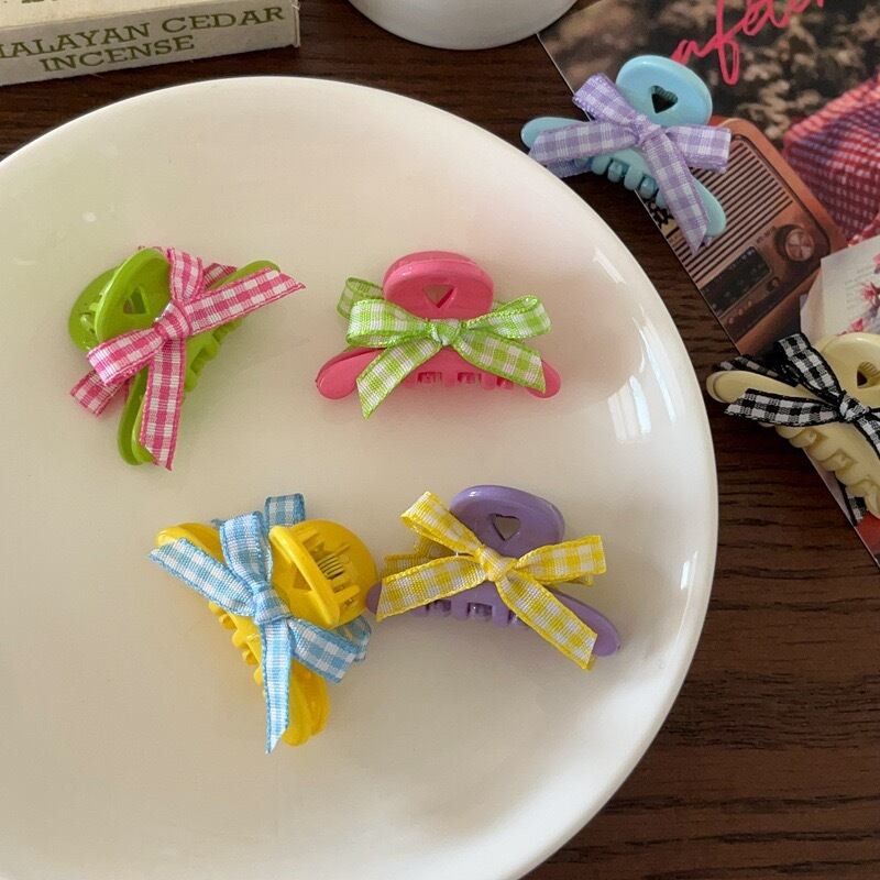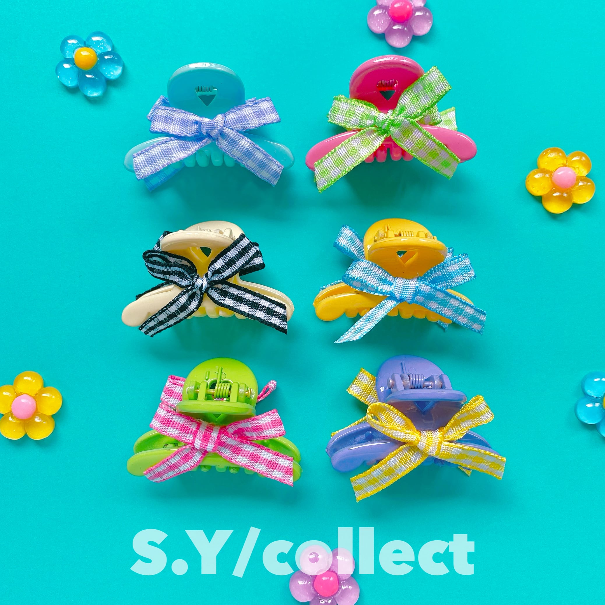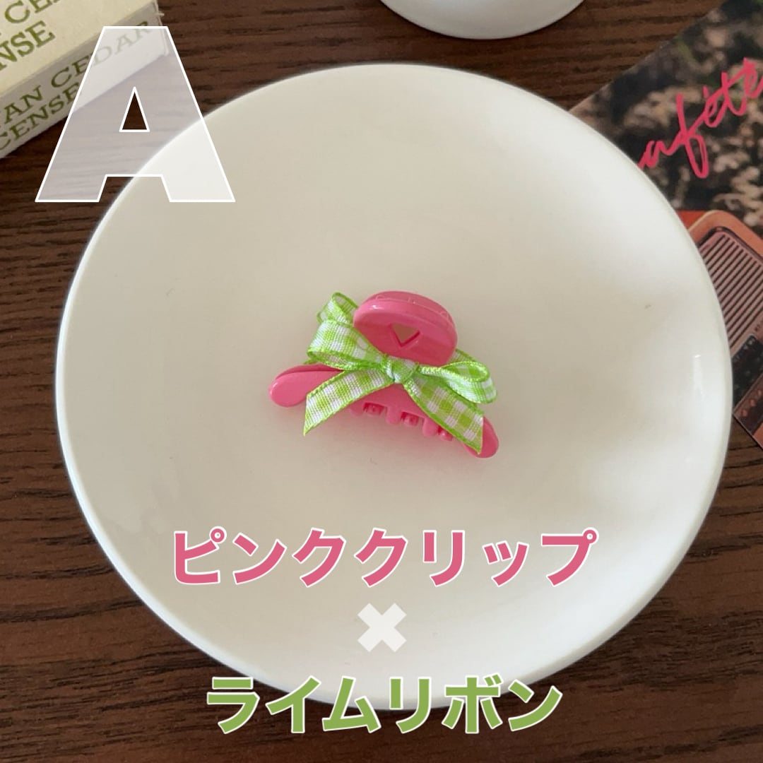 ビビッドなミニクリップに軽やかで爽やかなかわいらしさが魅力のギンガムチェックのリボンがプラスされることでちょっとだけガーリーな気分.ᐟ♪