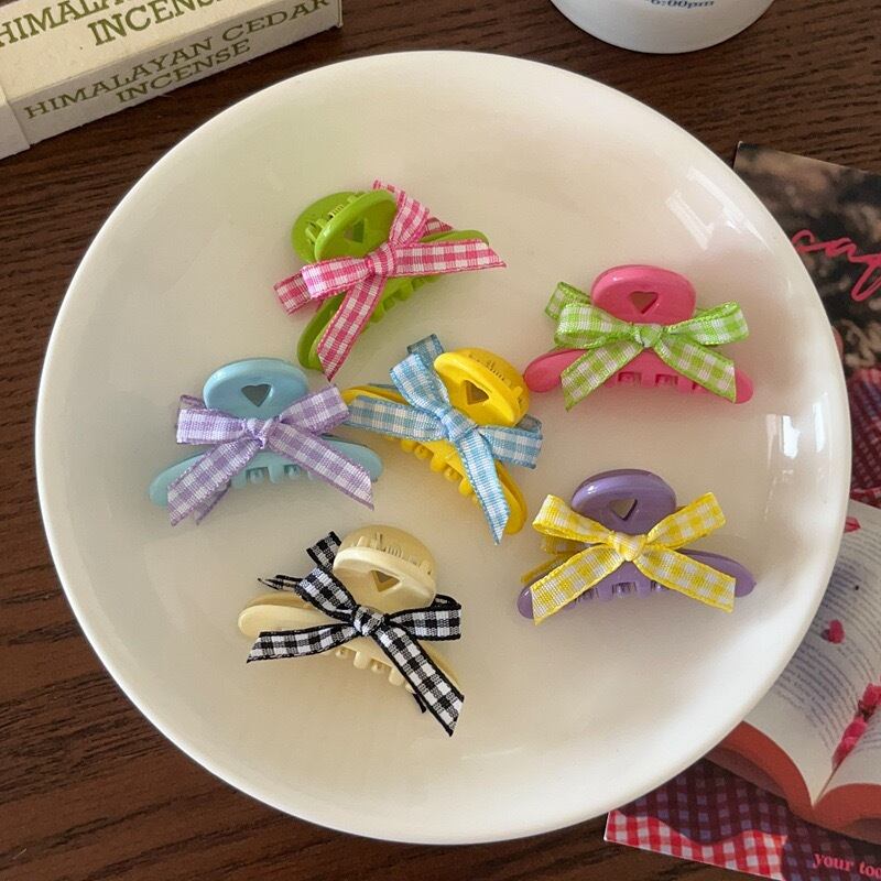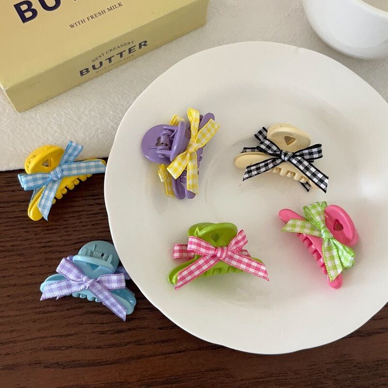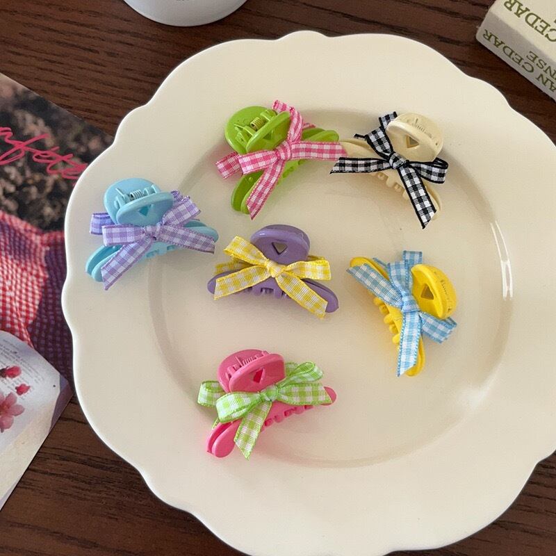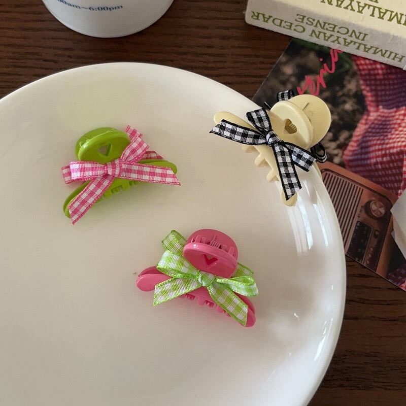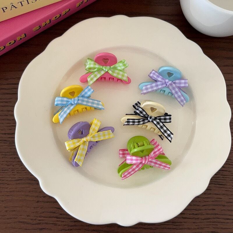 ビビッドなミニクリップに軽やかで爽やかなかわいらしさが魅力のギンガムチェックのリボンがプラスされることでちょっとだけガーリーな気分.ᐟ♪