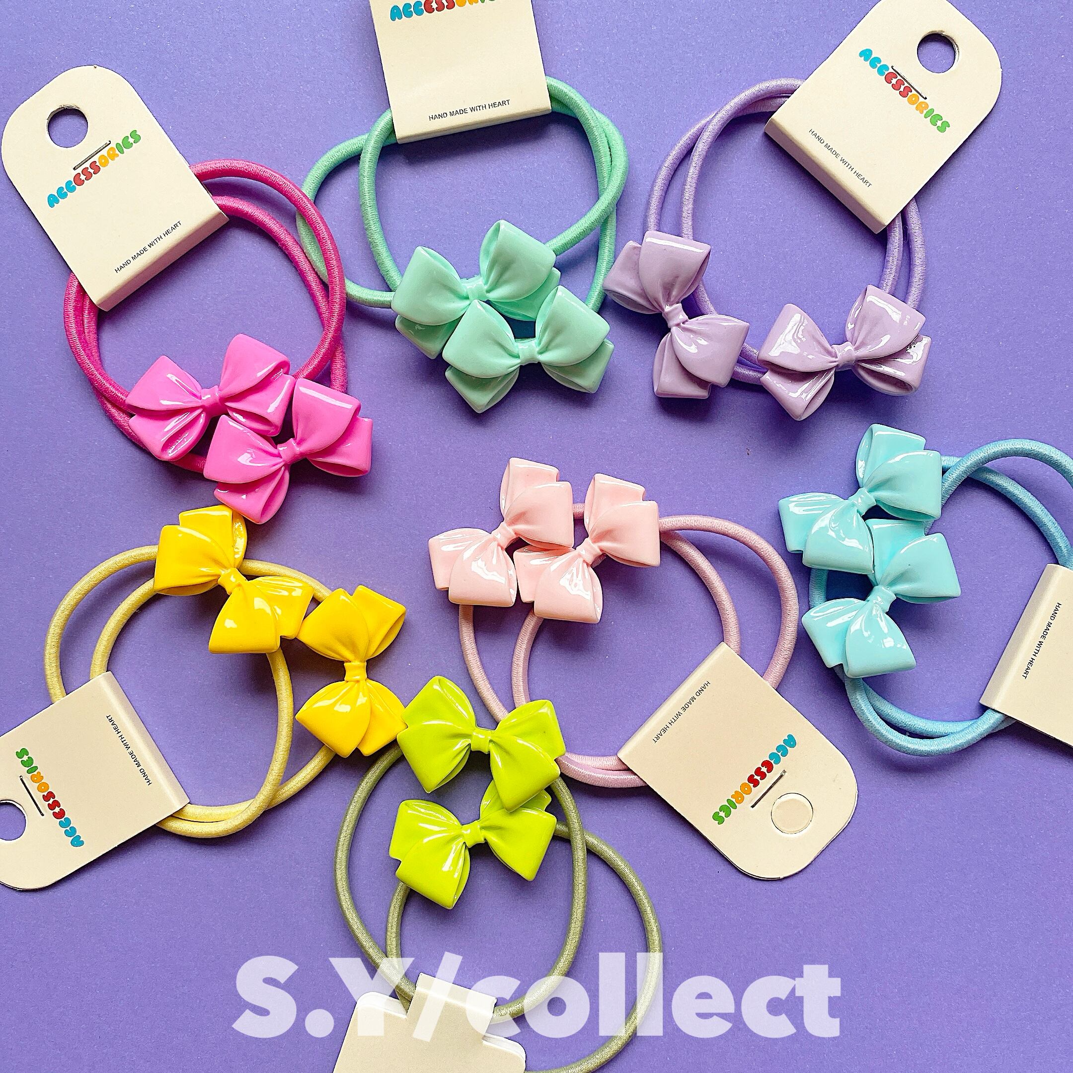 シンプルなワンカラーと小さめのリボンモチーフがデイリーに使いやすいヘアゴムset♥ˎˊ˗