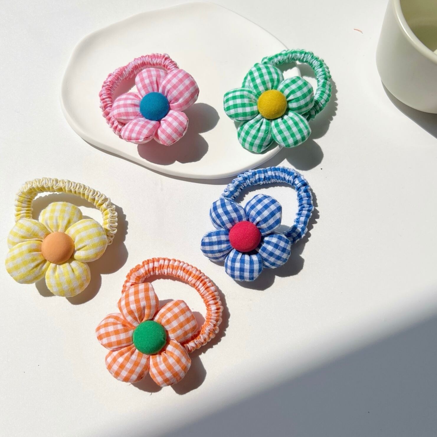 ボリューミーなハンドメイドフラワーモチーフと、ポップな配色にギンガムチェック♥♥♥
