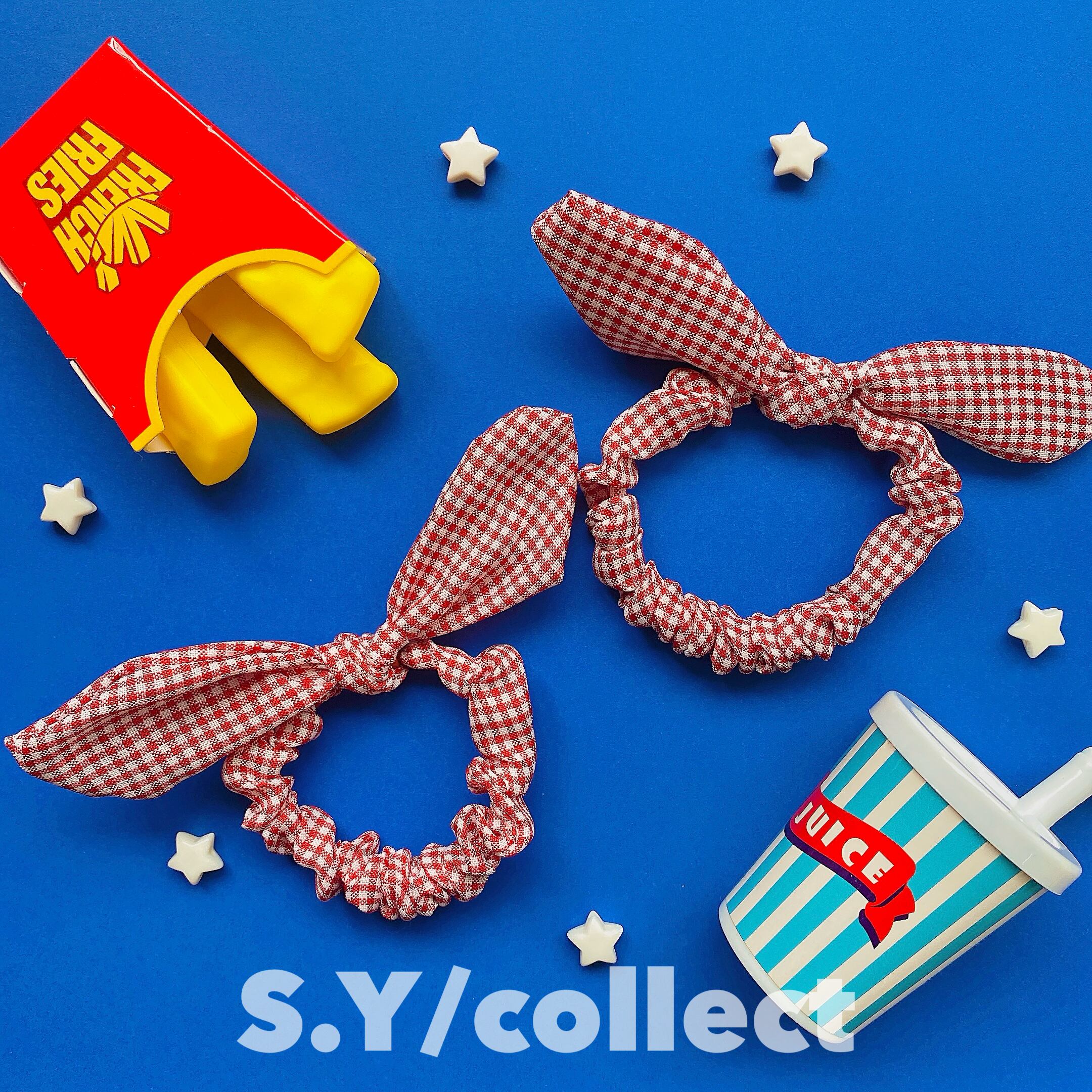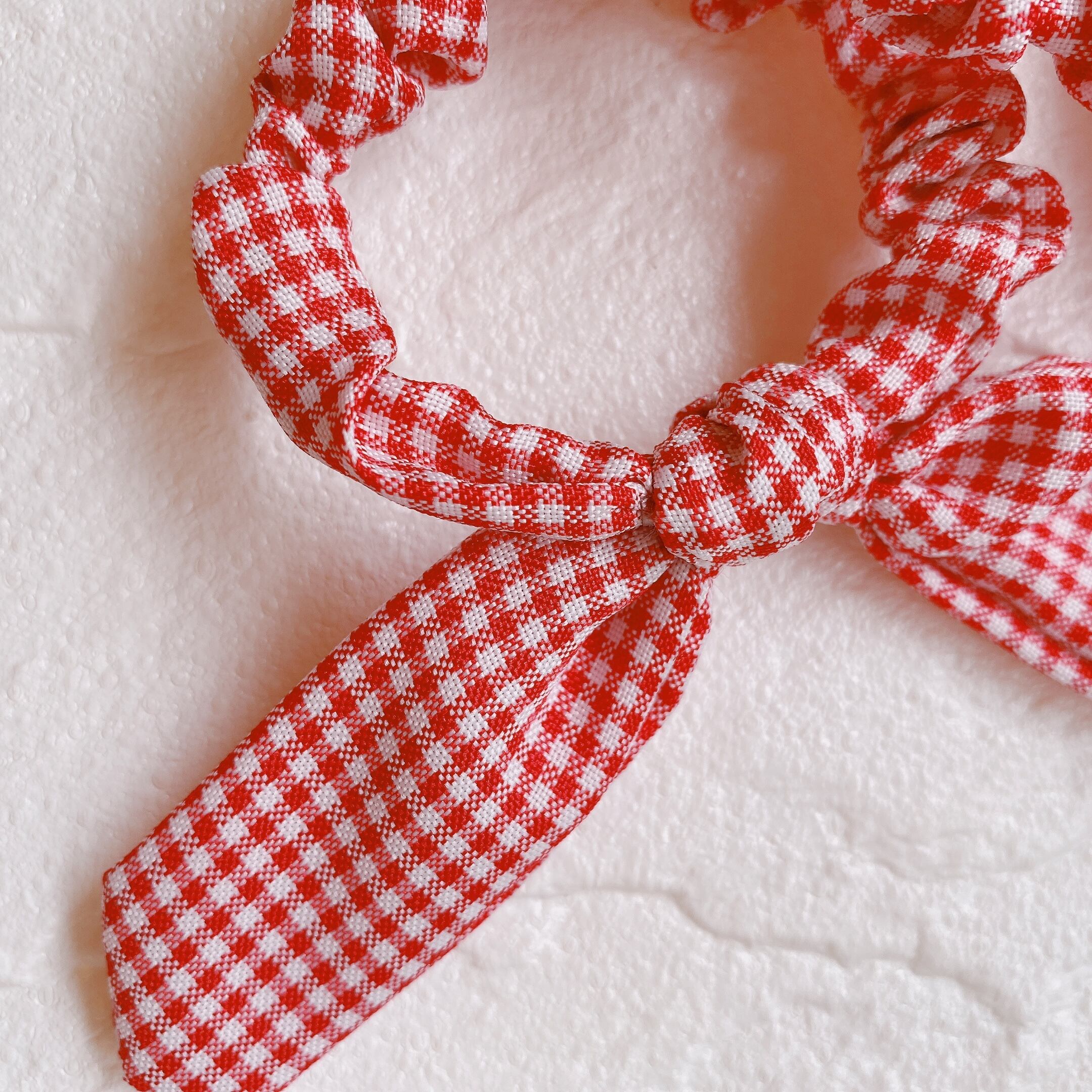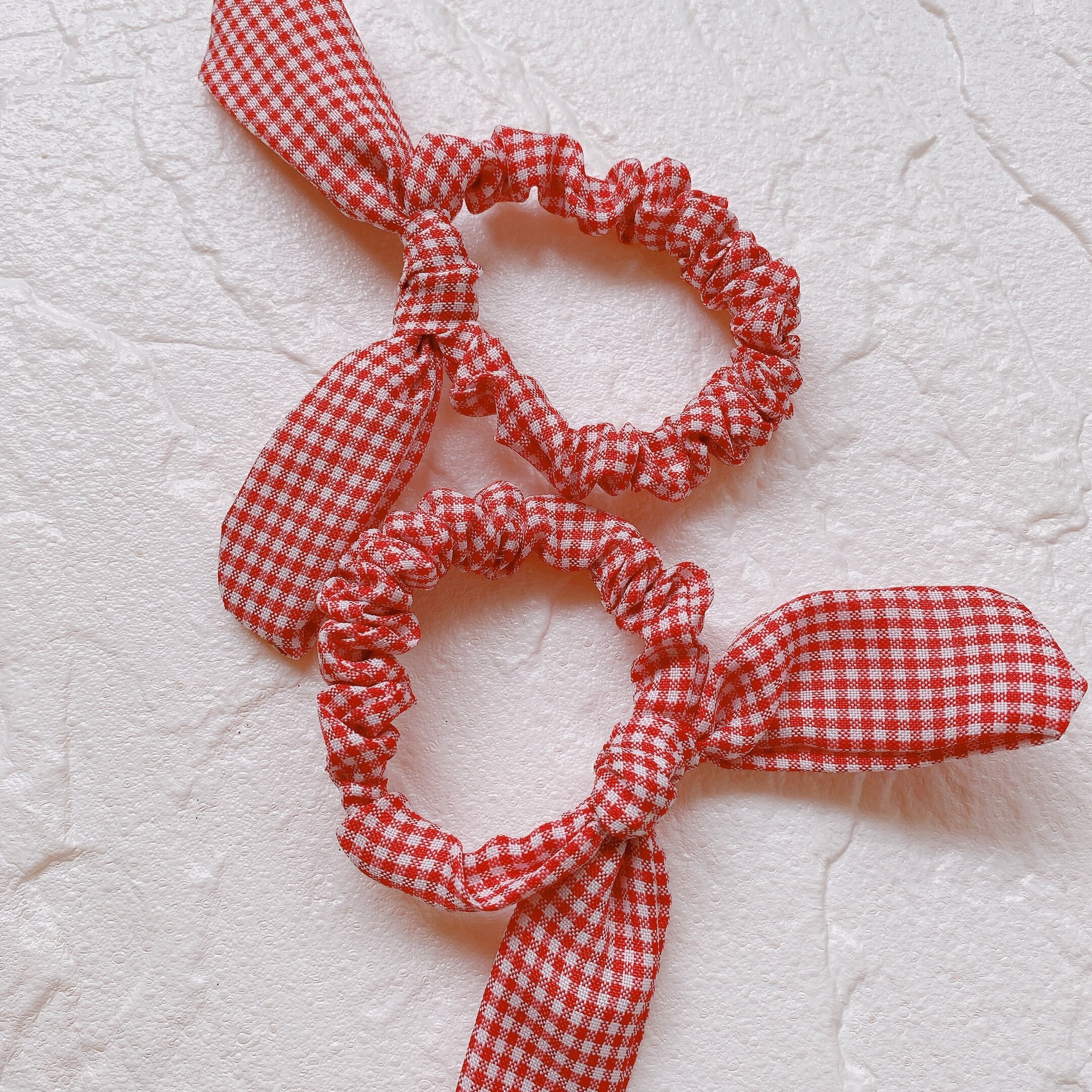 赤のギンガムチェックと、結んだようなデザインになるリボンデザインが可愛いミニシュシュ♥♥♥